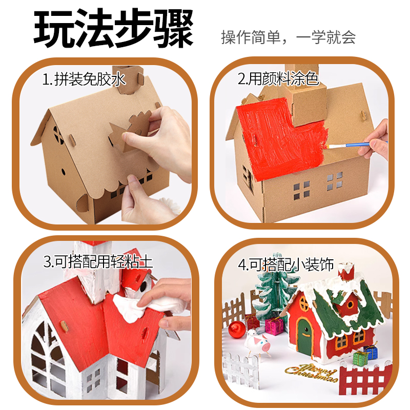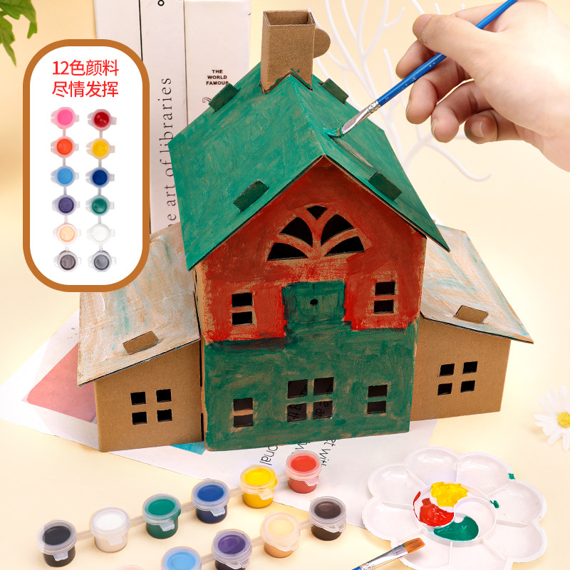 📚 儿童手工房子材料包二年级科学作业纸板小屋模型diy大别墅半成品