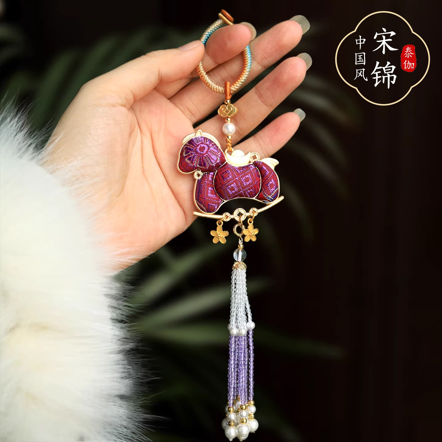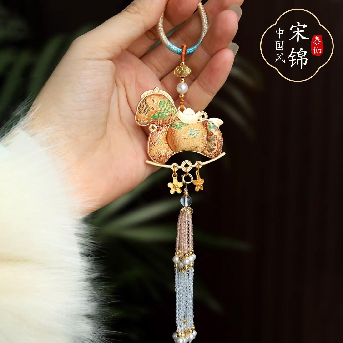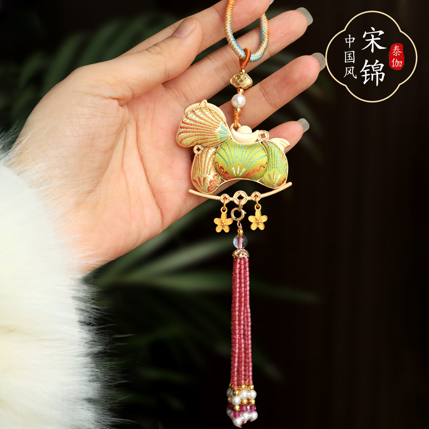 📚 双面宋锦马上有钱花水晶流苏包车挂钥匙扣吊坠挂件汉服压襟礼物女