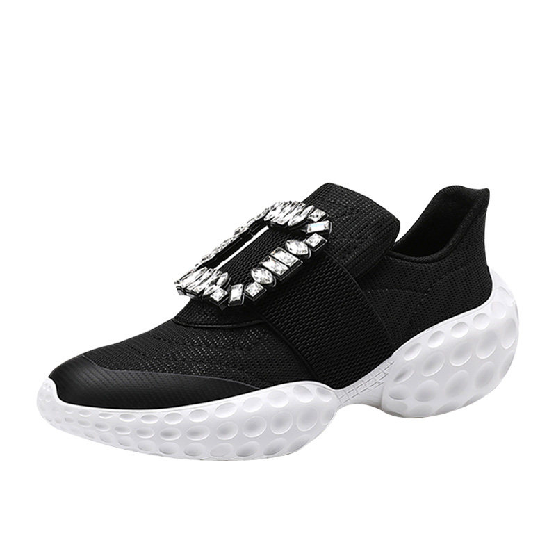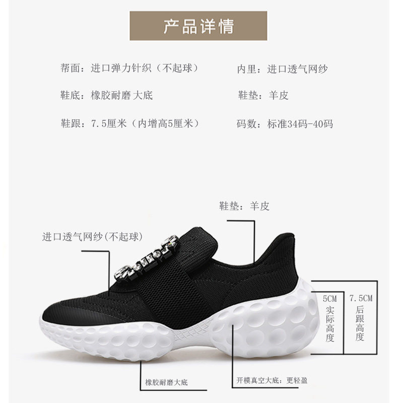 📚 rv唐嫣同款黑色水钻方扣舒适妈妈鞋内增高休闲乐福鞋运动老爹鞋女