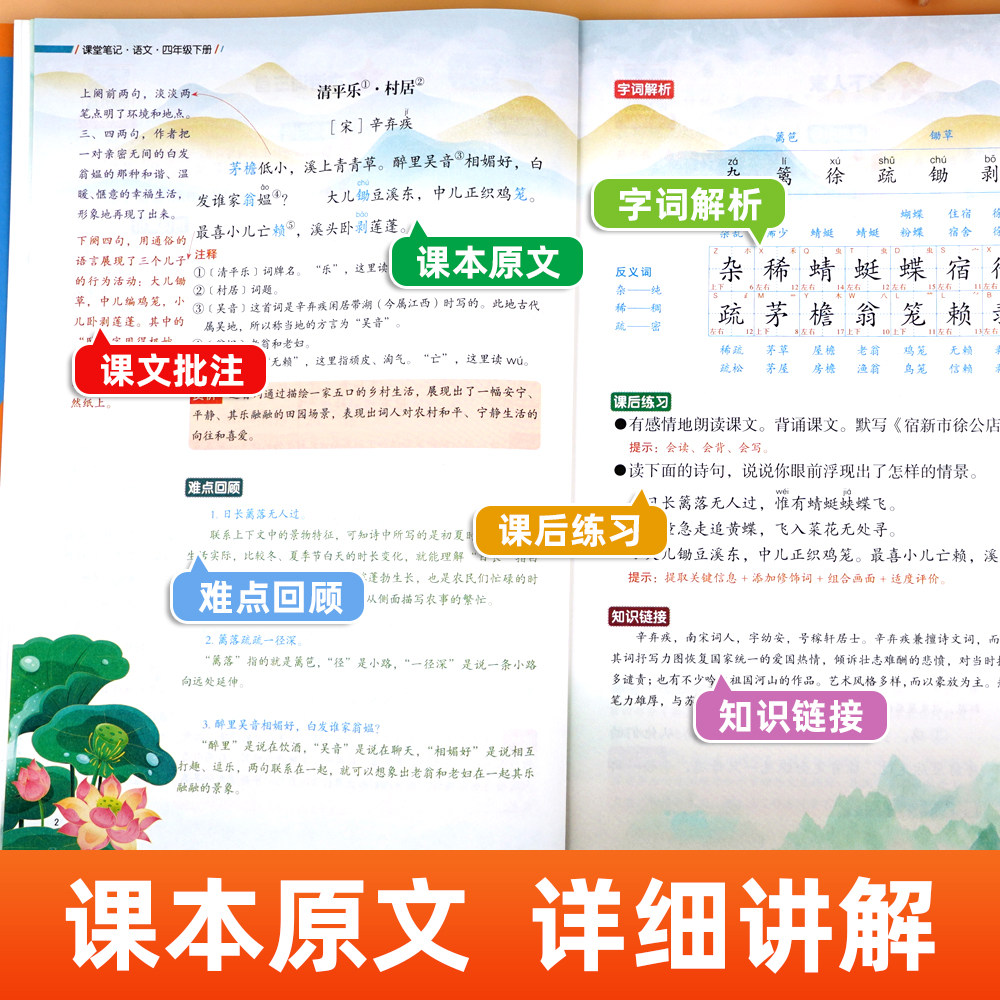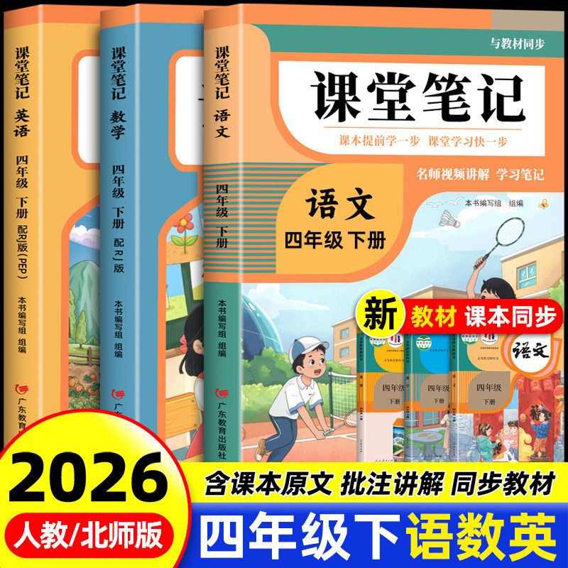 📚 2026年新版四年级下册课堂笔记语文数学英语人教版同步课本预习四下数学北师大版辅导资料书小学教材同步解读正版学霸课堂笔记全套