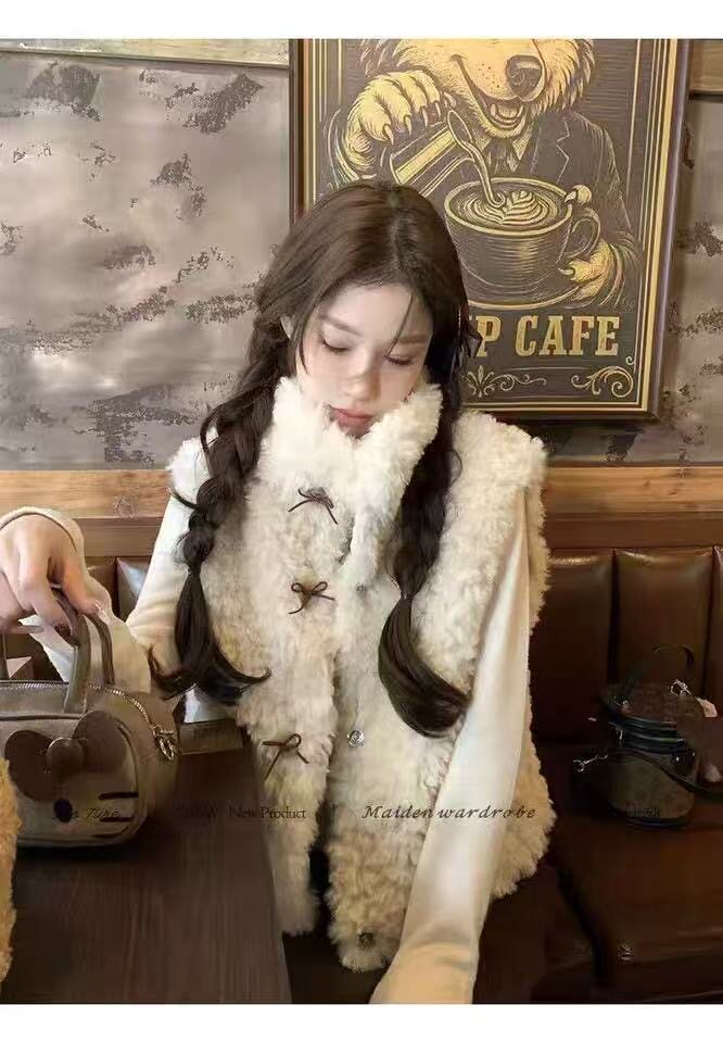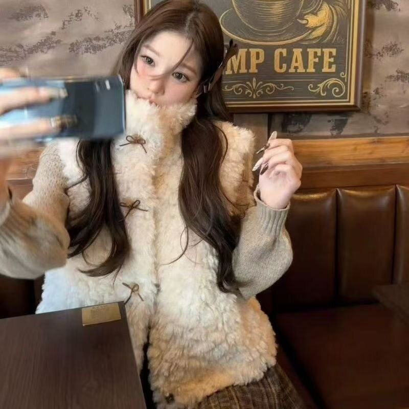 📚 2026秋冬新款仿羊羔毛马甲女短款加棉加厚皮草马甲保暖毛茸茸坎肩
