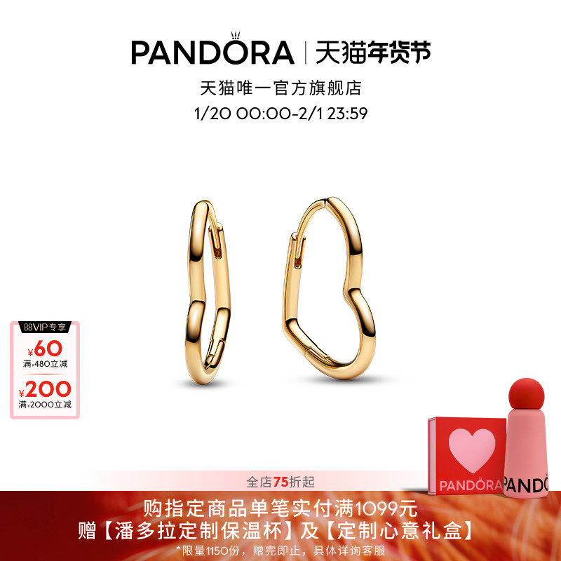 📚 [新年礼物]Pandora潘多拉不对称心形耳环金色爱心高级感时尚独特
