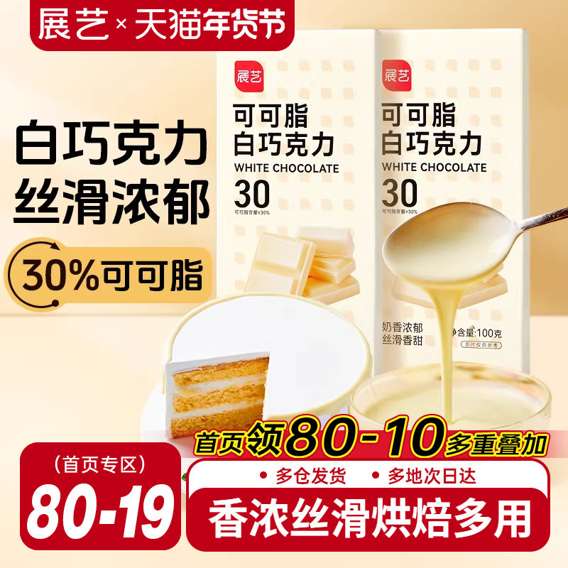 📚 展艺纯白巧克力烘块培专用可可脂diy自制曲奇蛋糕饼干官方旗舰店