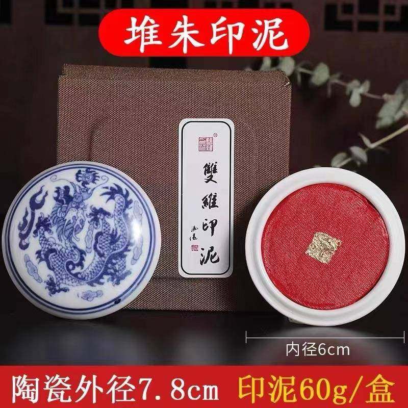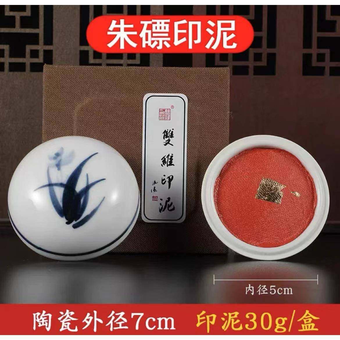 📚 双维朱砂印泥书法篆刻盒装红色印泥陶瓷盒双维印泥油朱磦印泥红油