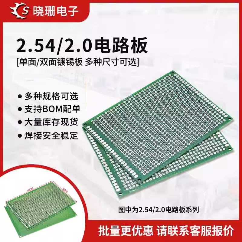 📚 pcb单面板万能板2.0/2.54mm电路板镀锡洞洞板7*9cm线路实验面包板