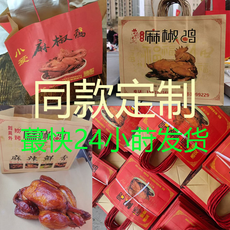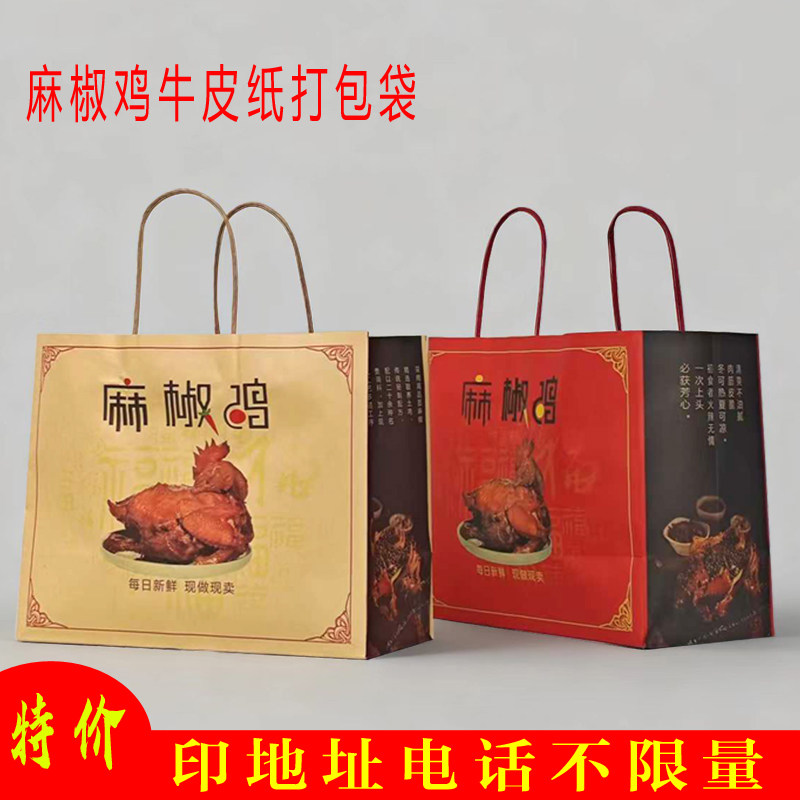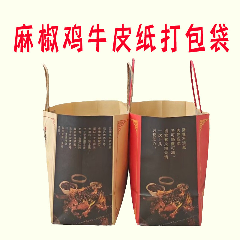 📚 麻椒鸡牛皮纸袋手提袋定制加厚外卖烧烤食品打包椒麻鸡烤鸭袋子