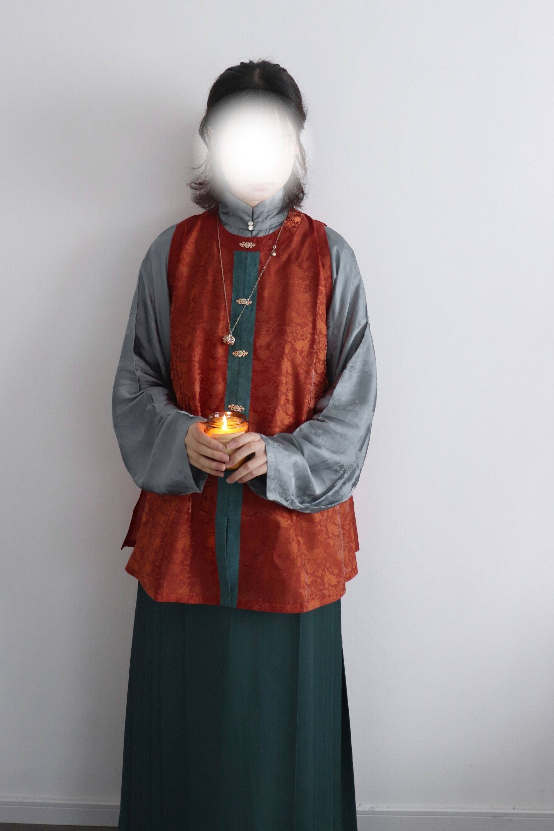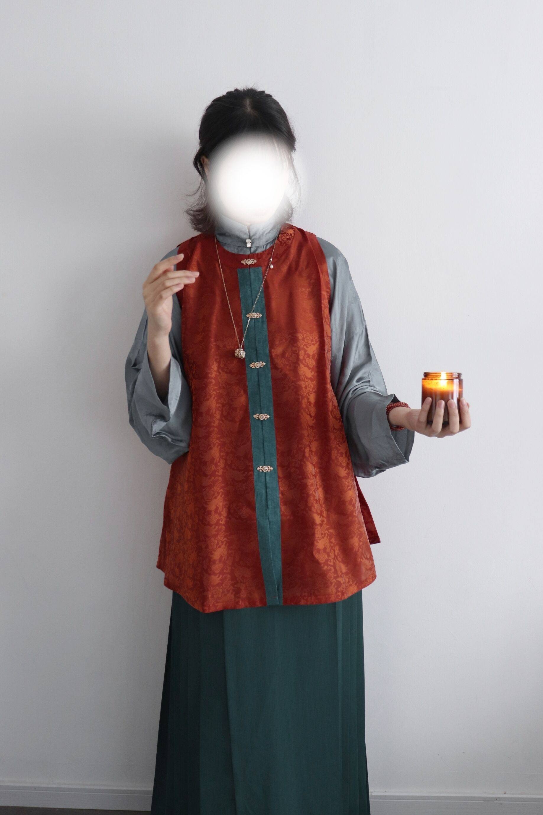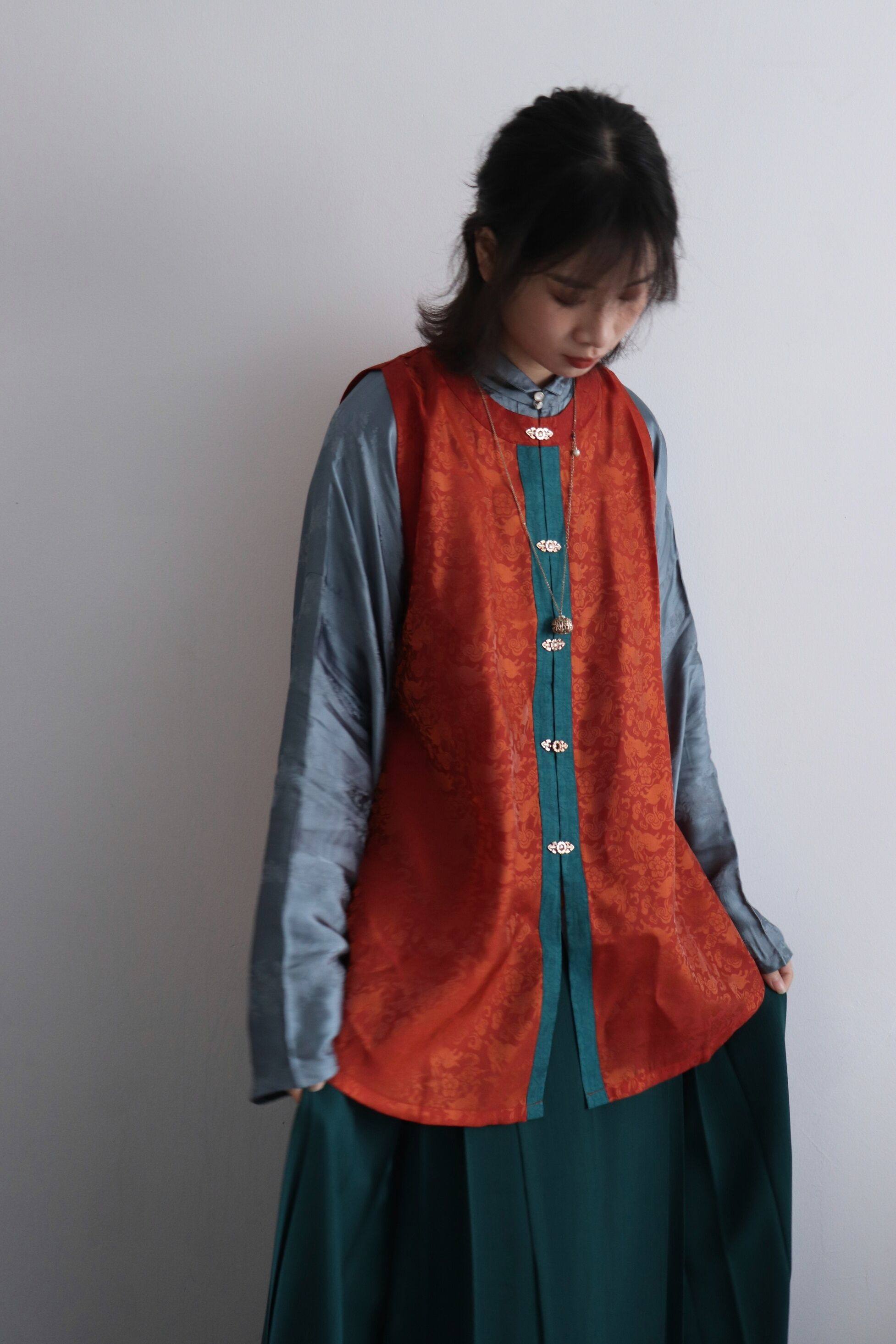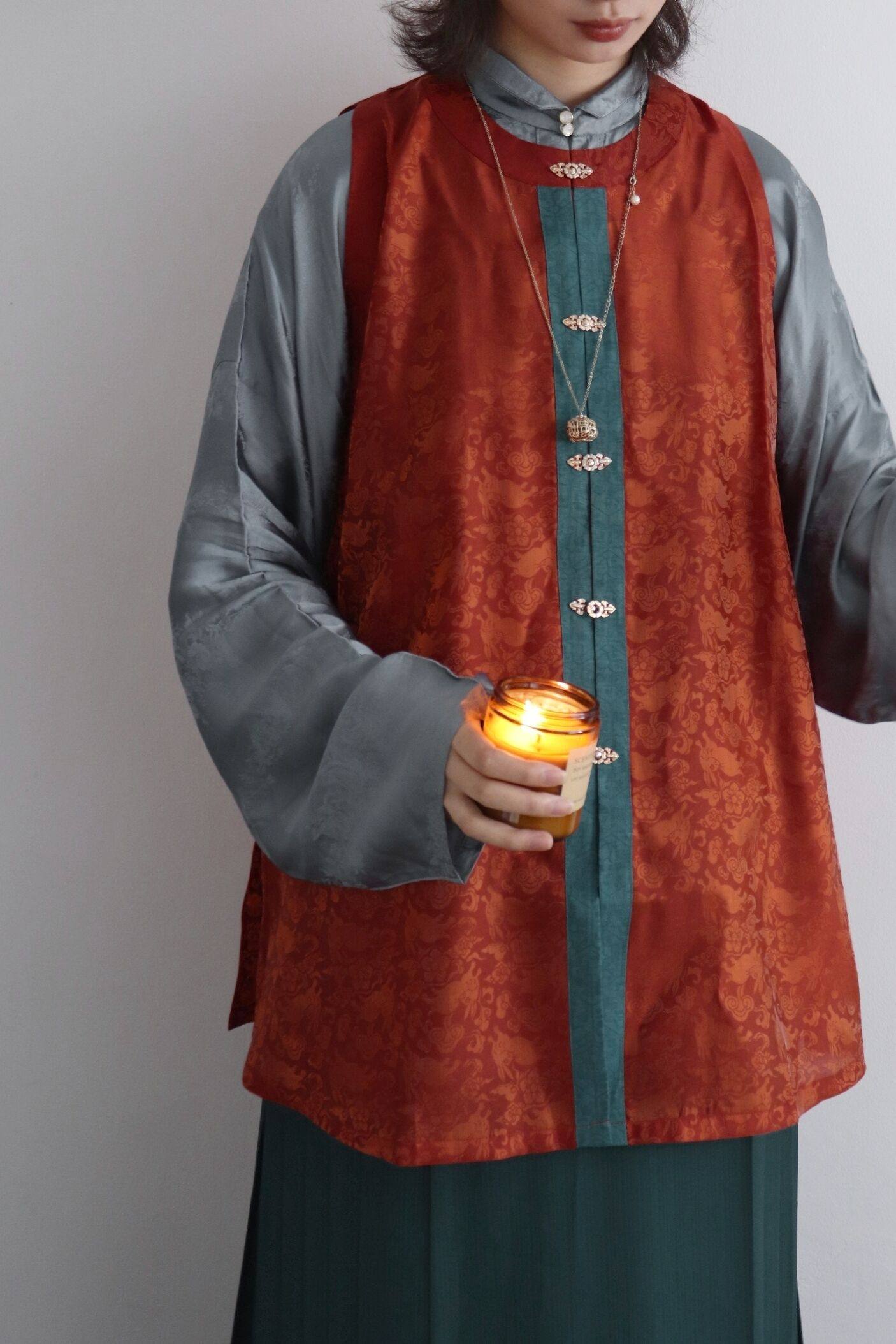 📚 裳裳者华 茶红 原创明制圆领对襟春夏秋提花仿孔府短比甲日常汉服