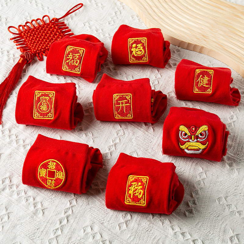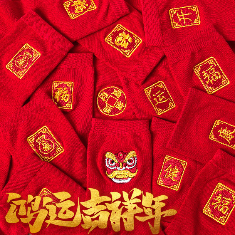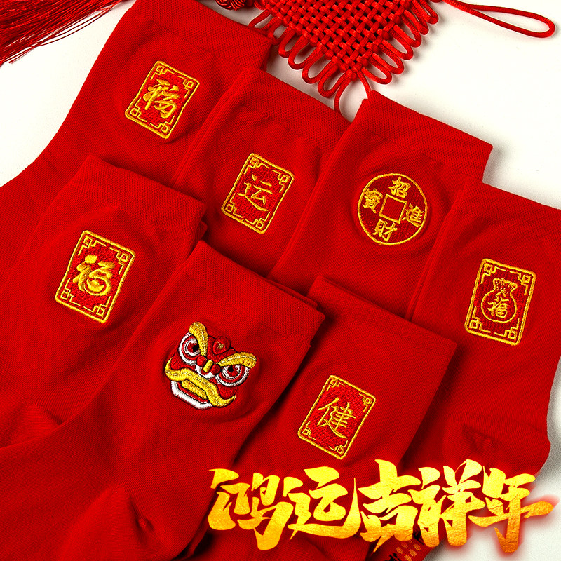 📚 本命年蛇年红袜子麻将赢钱发财情侣男女中筒棉精梳棉刺绣礼盒红色
