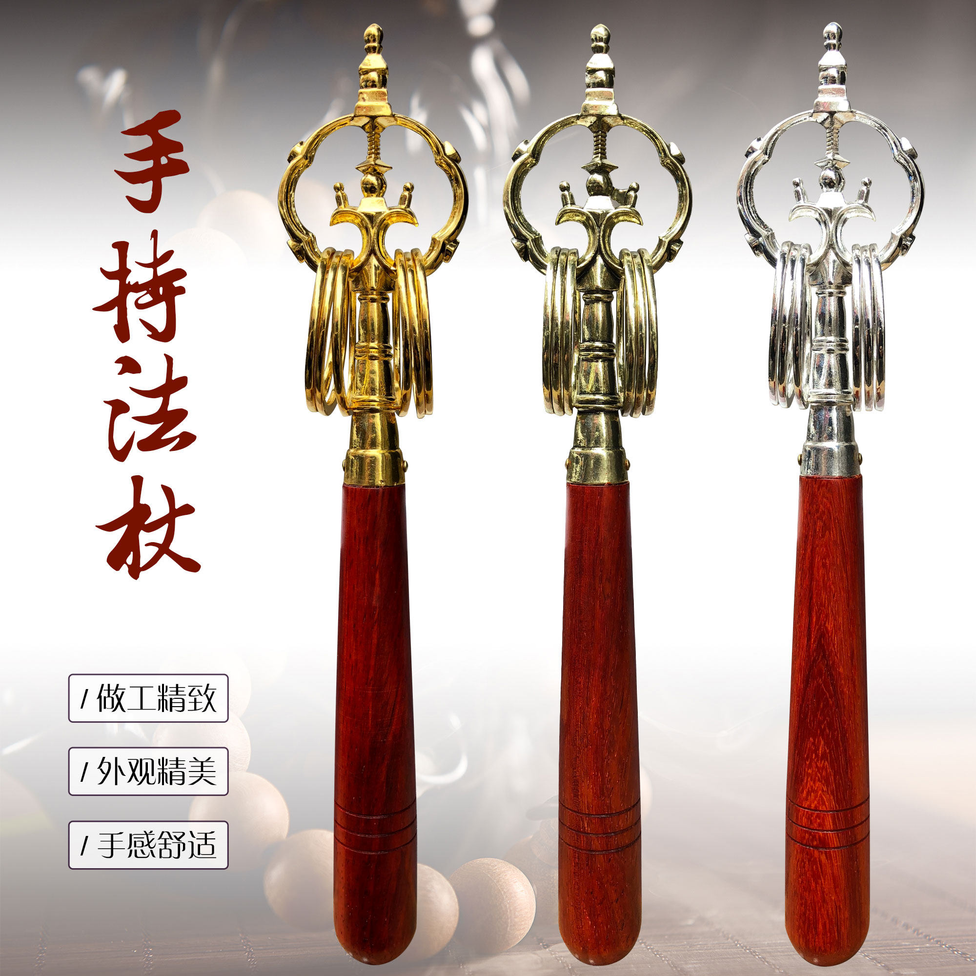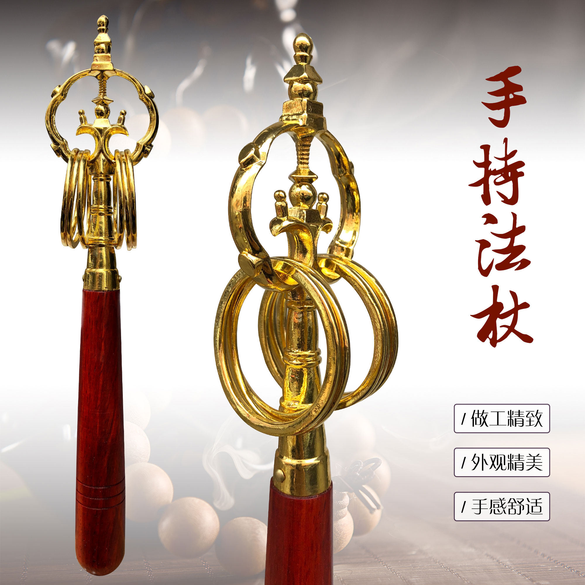 📚 缘沐斋佛具佛堂佛龛佛具实木手柄合金禅修诵经念佛手持禅杖锡