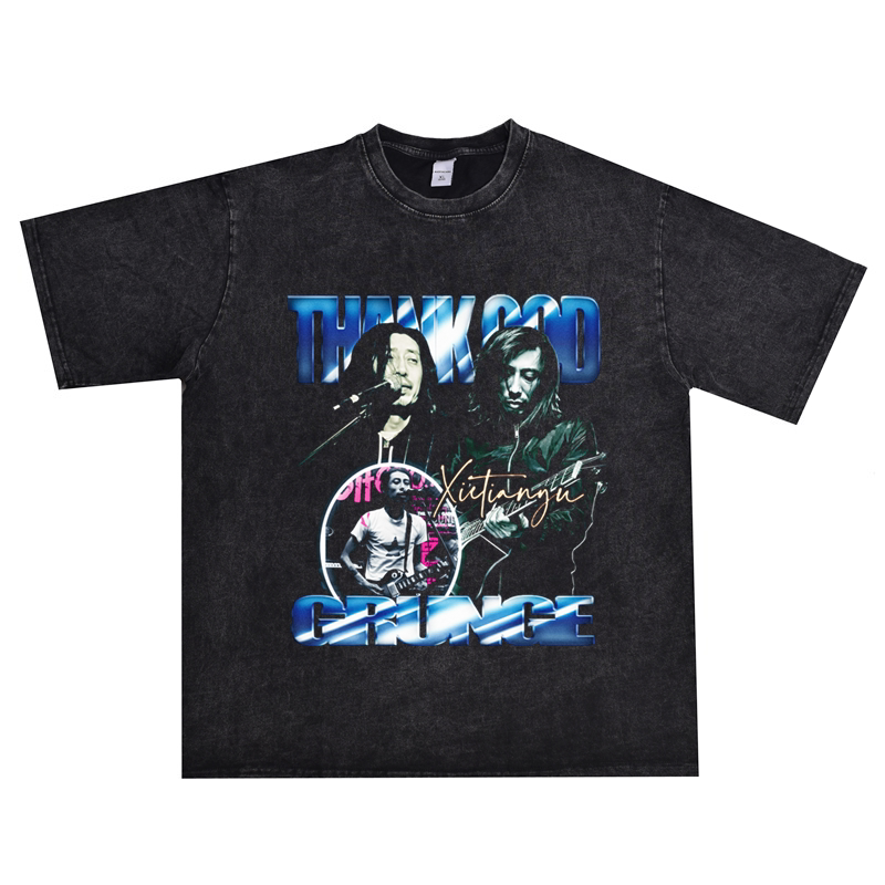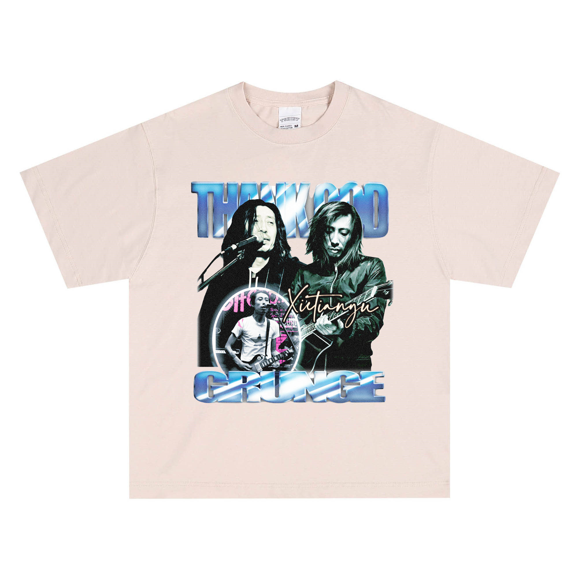 📚 直喷雷鬼谢天笑与冷血动物乐队幻觉摇滚专辑印花宽松短袖圆领T恤