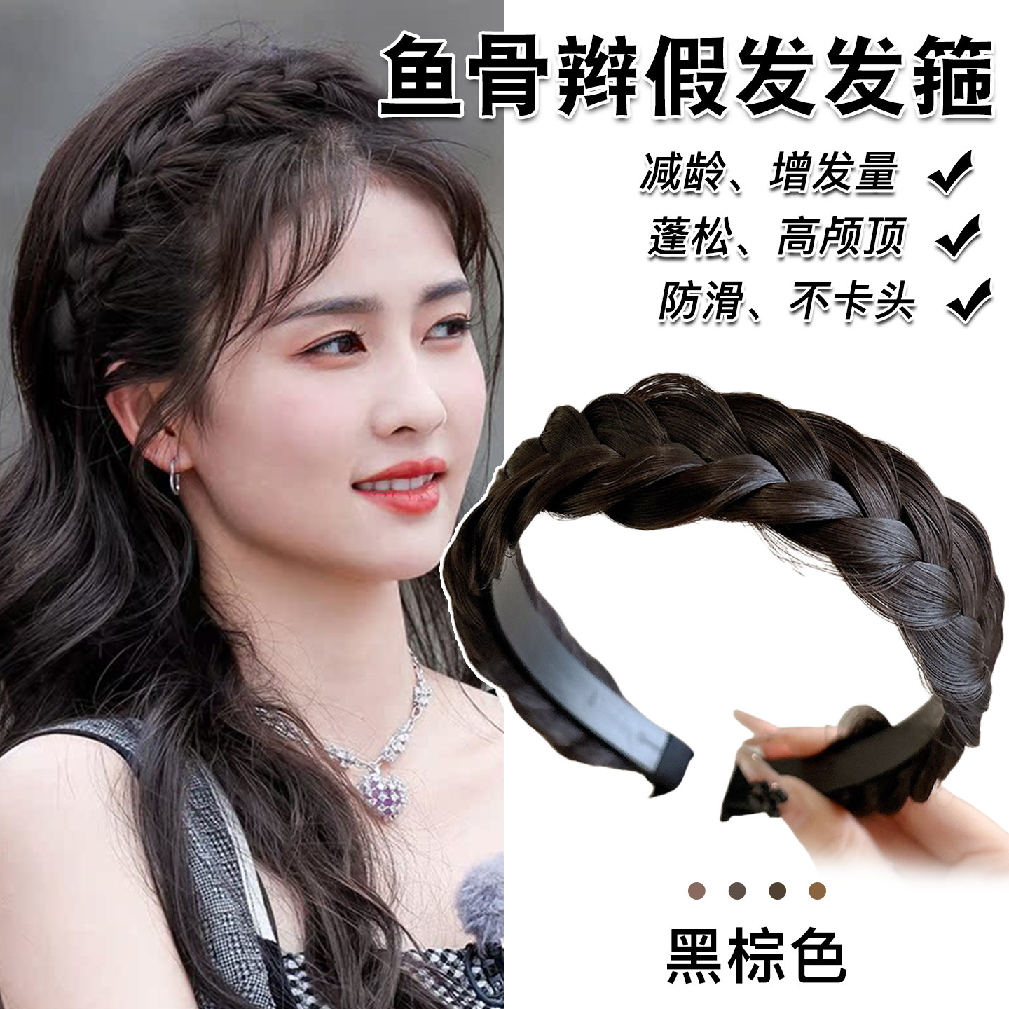 📚 鱼骨辫假发发箍女2025新款麻花辫编发发卡发捆高颅顶压发头箍头饰