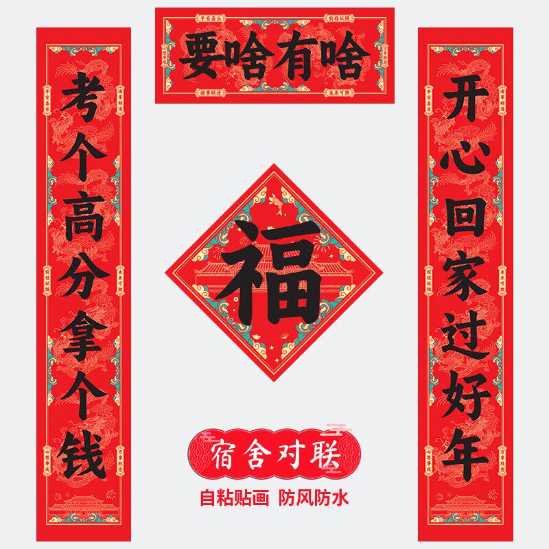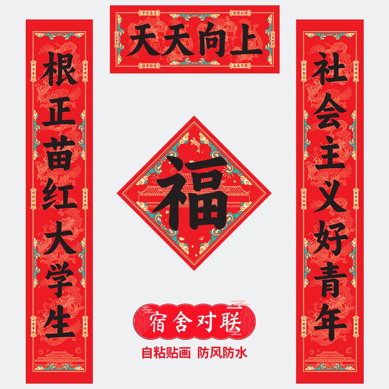 📚 学生宿舍寝室对联研究生考试励志大门对联网O红春联自粘贴防水防