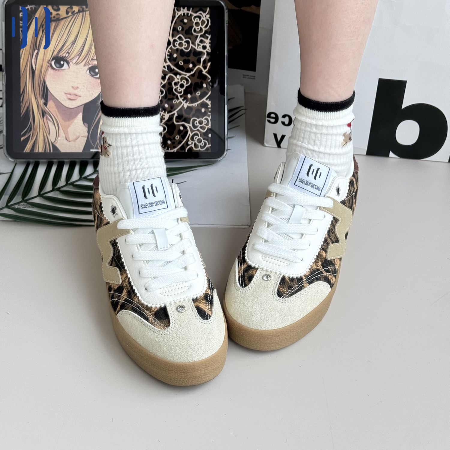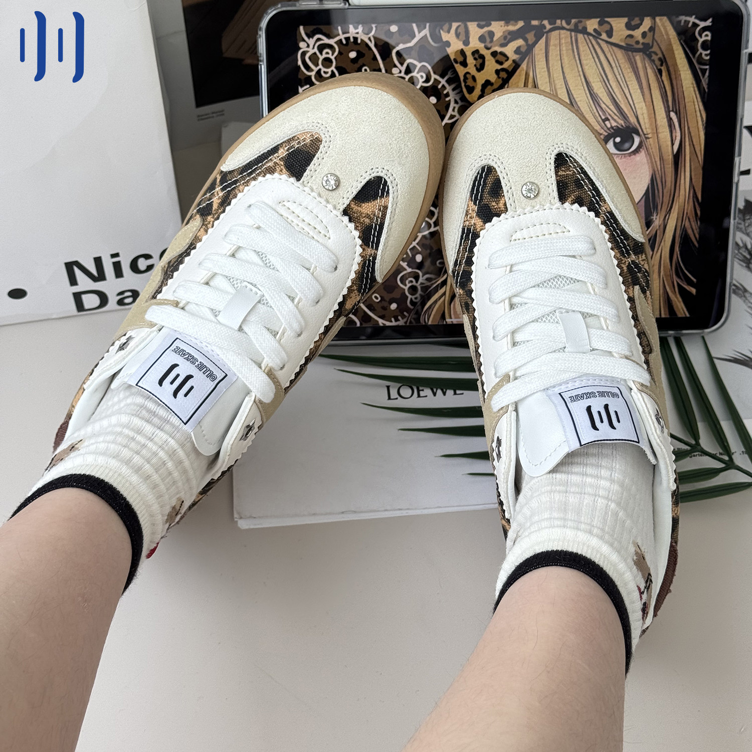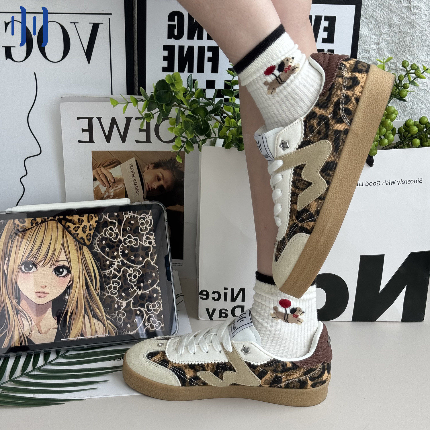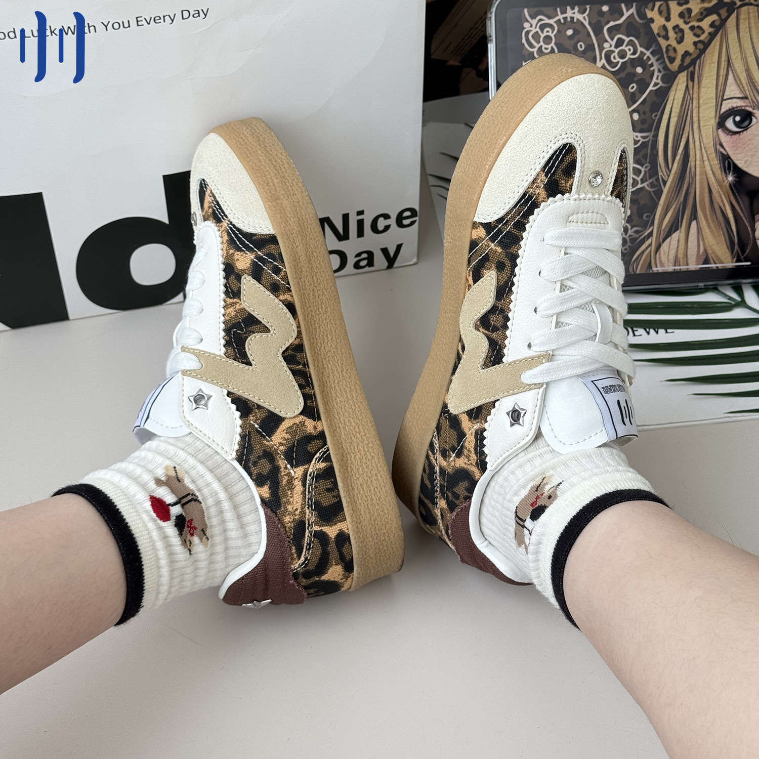 📚 顽刻官方豹纹印花翻毛皮生胶底W系列男女国潮德训滑板鞋