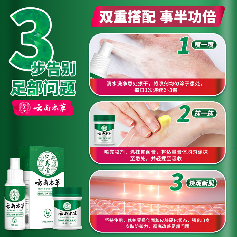 📚 云南本草脚除脱杀皮菌气喷雾烂去脚丫膏痒臭脚出汗水喷剂