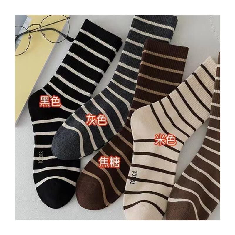 📚 条纹袜子女中筒袜美拉德色系日系百搭学院风运动袜潮流中筒袜子