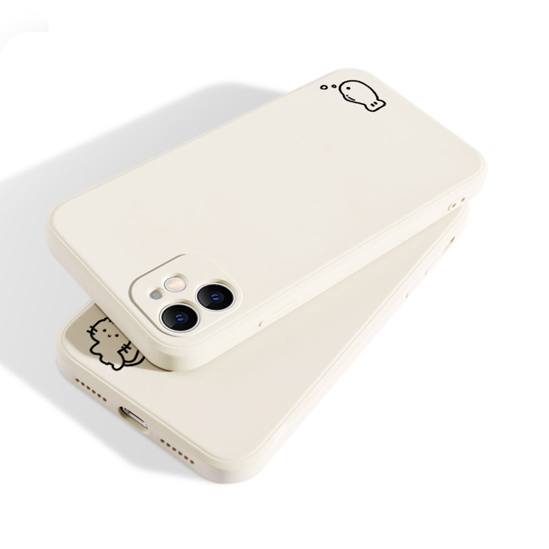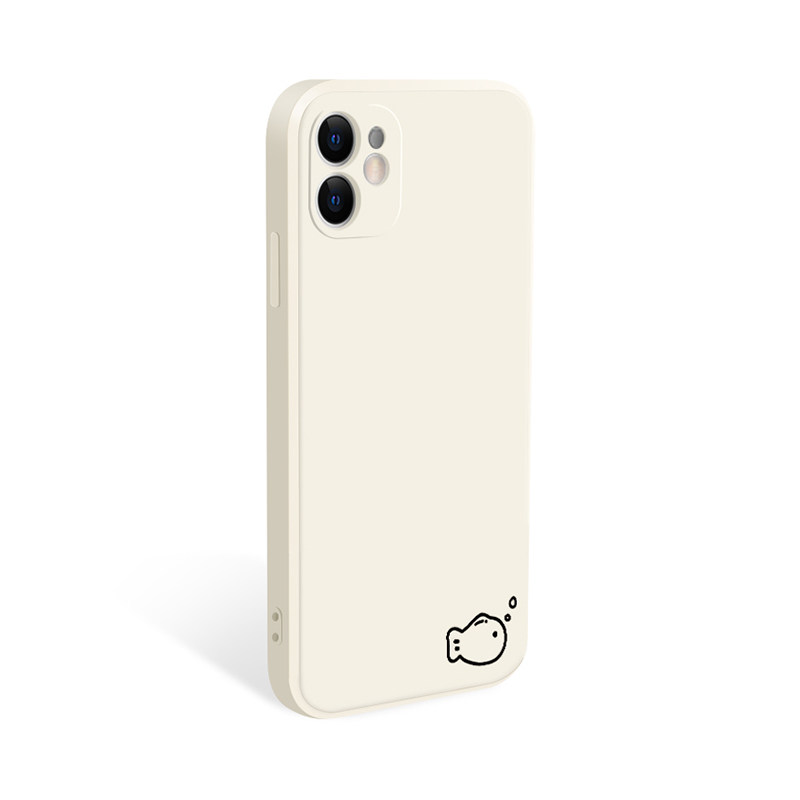 📚 左下角爱心猫右下角冒泡鱼iPhone14手机壳14Pro苹果新款12简约设计感情侣款13Pro
