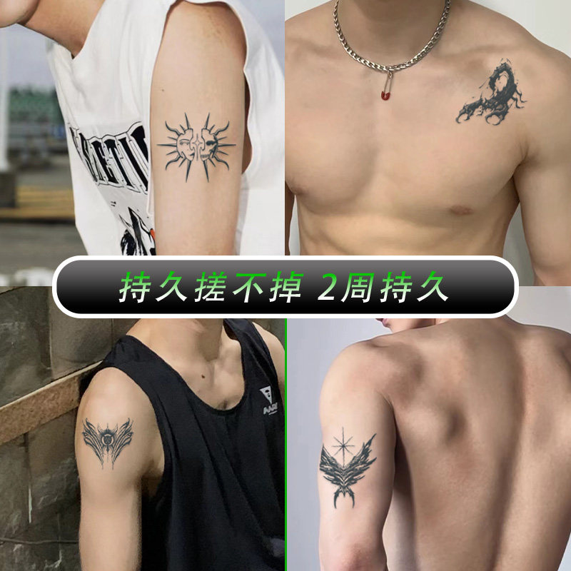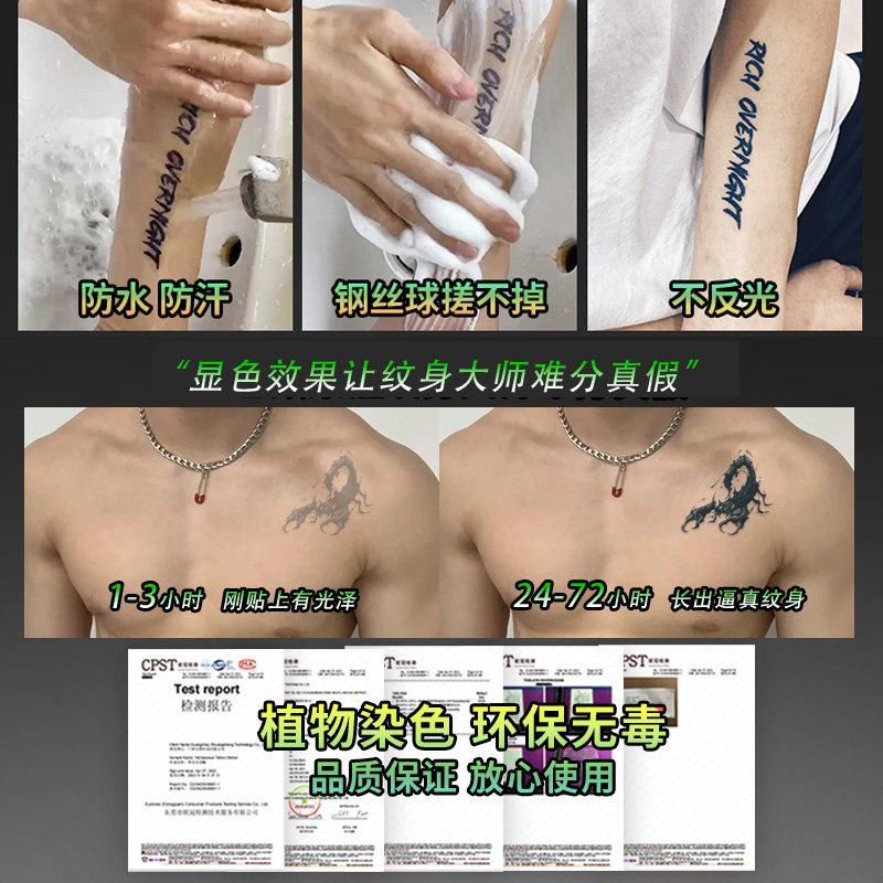 📚 草本纹身贴男防水持久胸前手臂脖子刺青潮流痞帅仿真不反光防搓洗