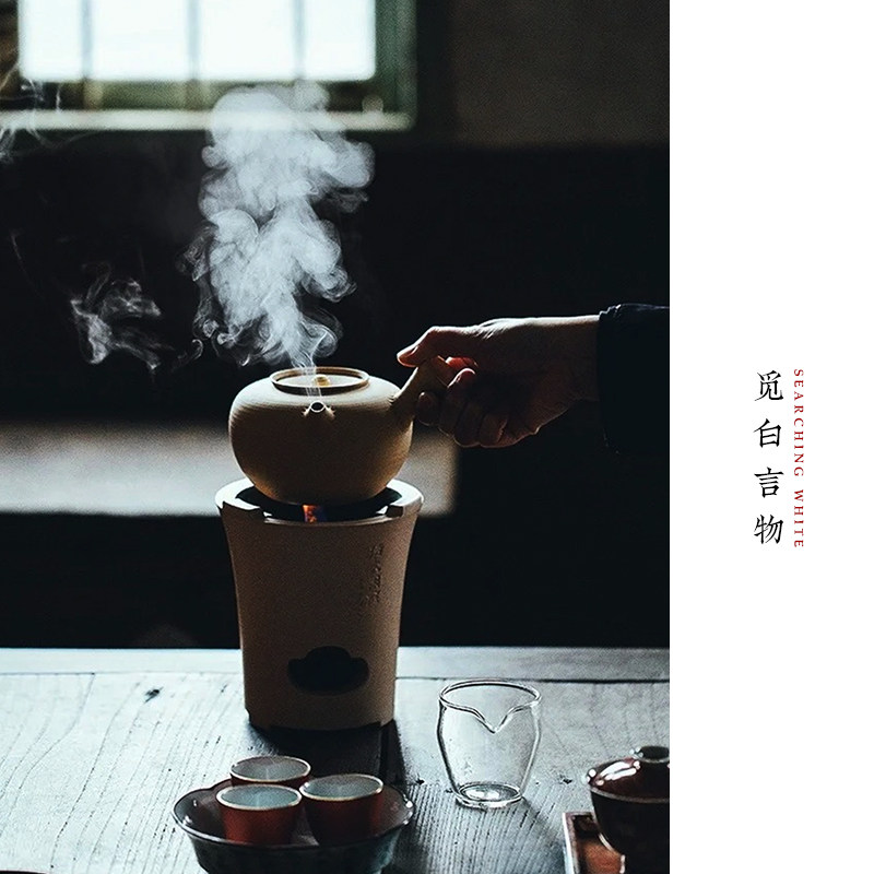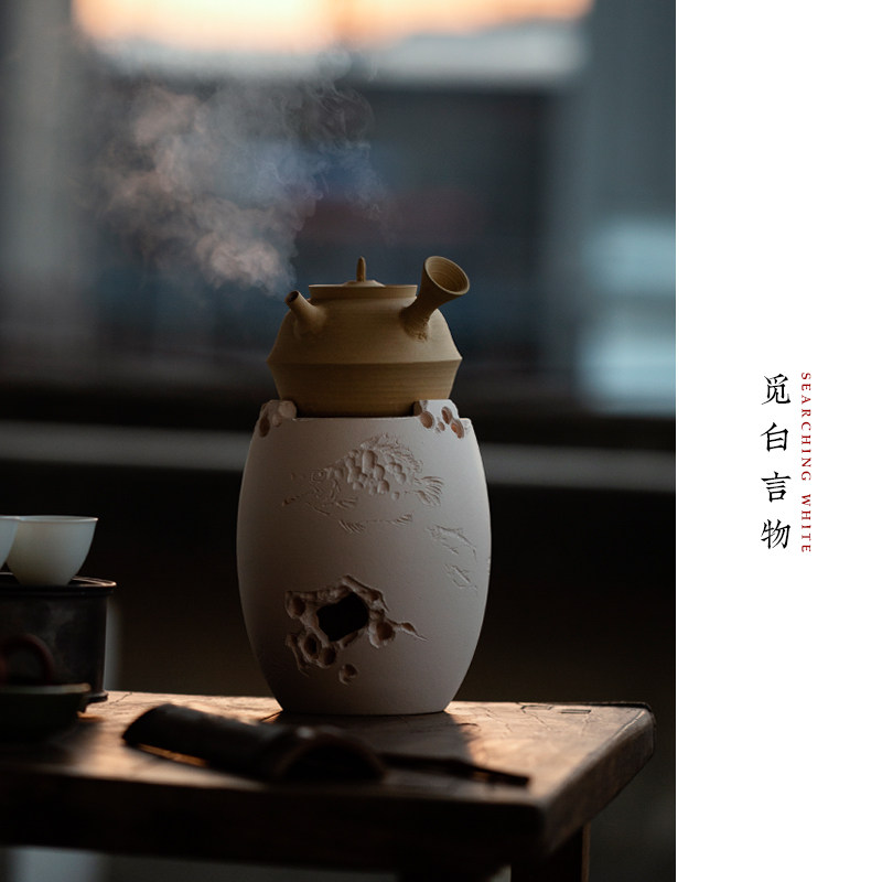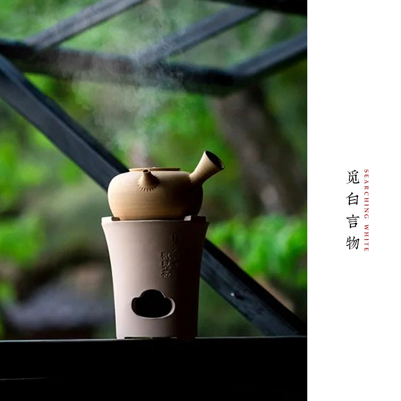 📚 觅白泥炉摹古炭烧水砂铫侧把手工夫雕刻茶副榜玉书煨太湖石文人器