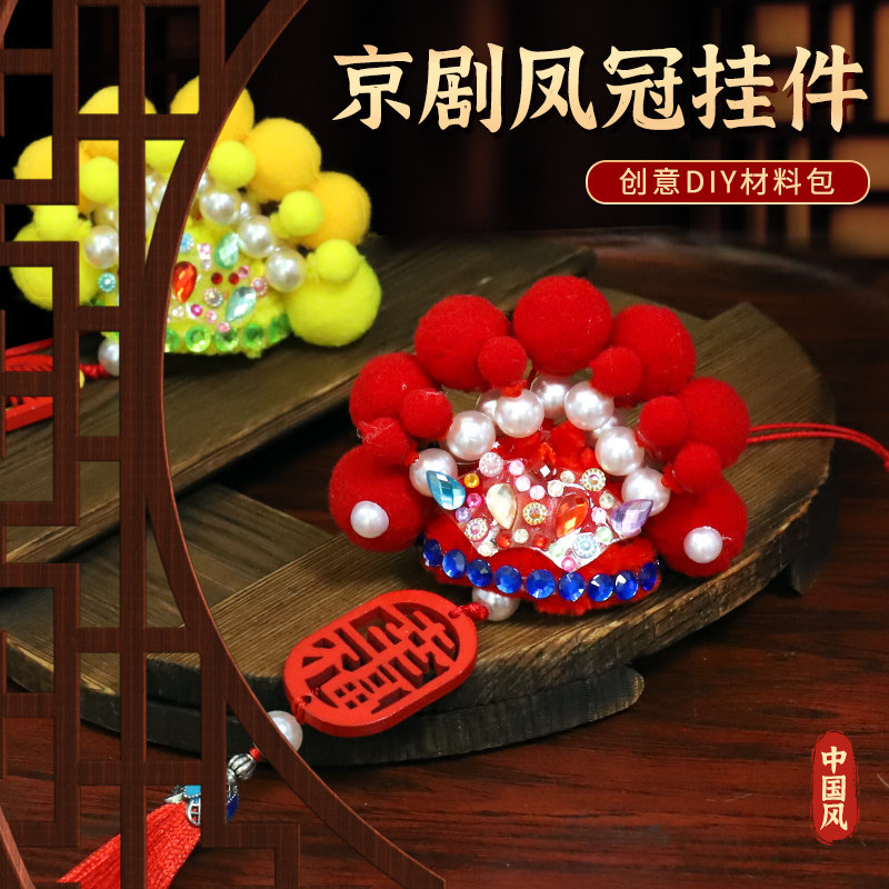 📚 非遗迷你京剧凤冠挂饰制作材料包儿童头饰元宵节diy莲花古风挂件