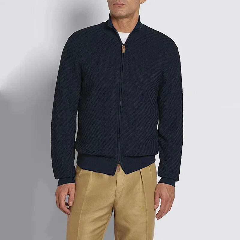 📚 BAMIOW男士立领毛衣外套含50%羊毛中等厚度特色立体锁温织纹31800