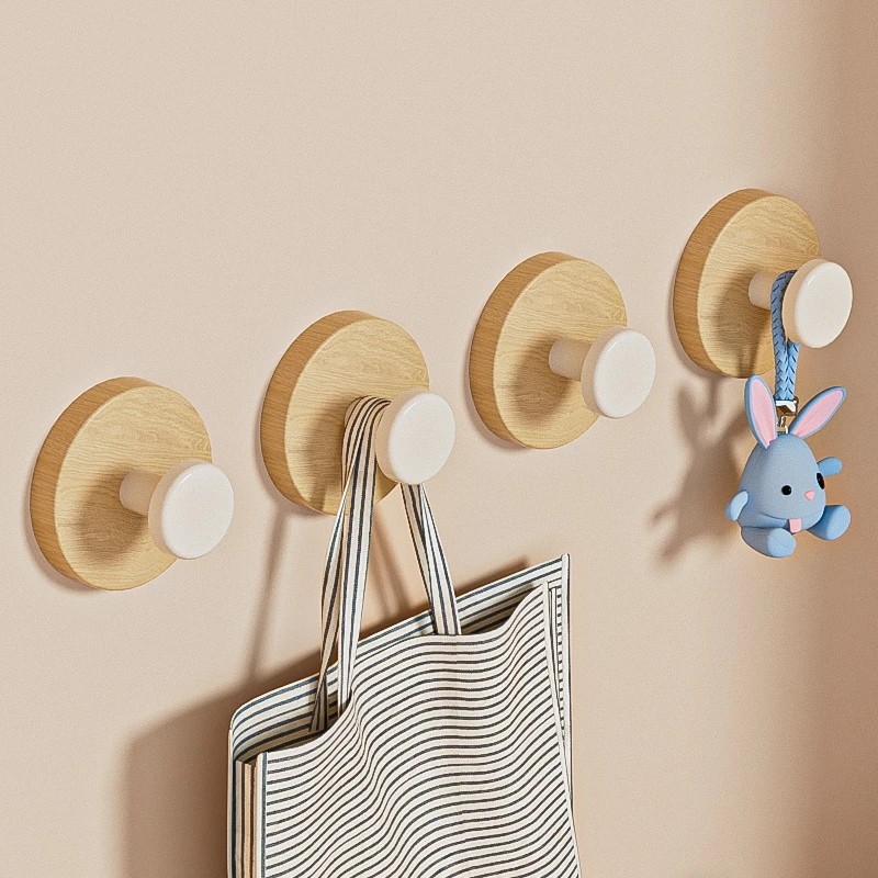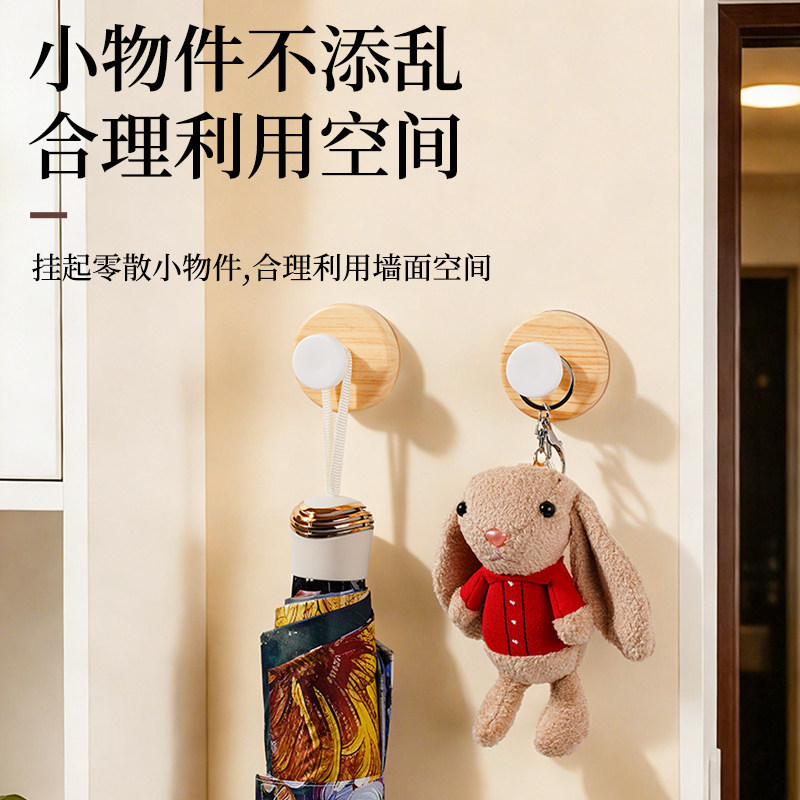 📚 真空吸盘挂钩原木纹免打孔强力承重粘贴钩子卫生间浴室门后挂衣钩
