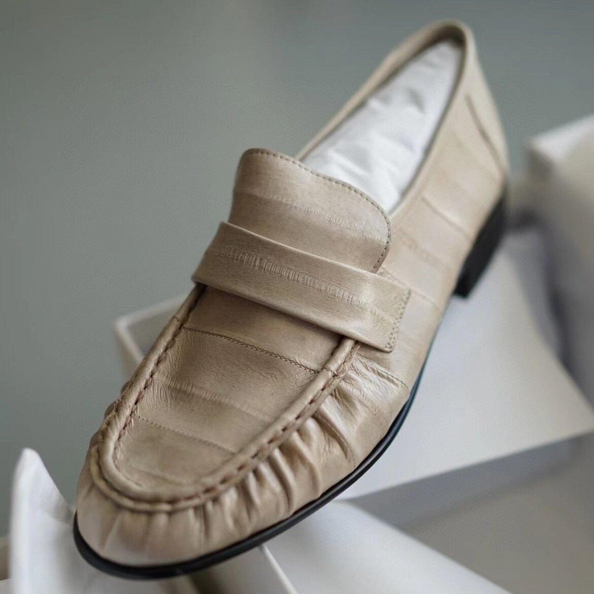📚 佩佩推荐 高品质真皮鳗鱼皮舒适休闲百搭个性女单鞋乐福鞋 B378