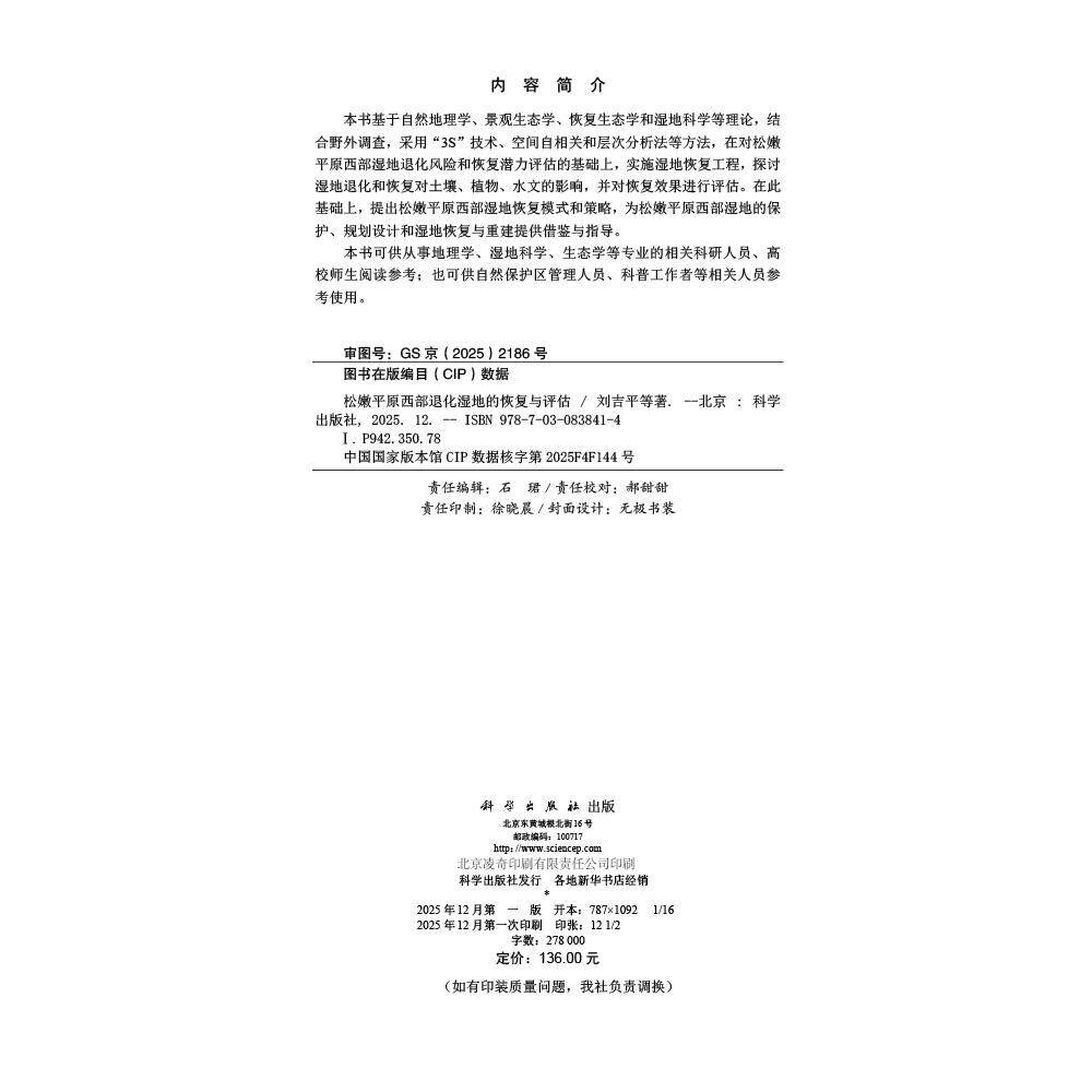 08¥ HU591 wnFaULI0oaj¥ https://m.tb.cn/h.7BqG7M5 松嫩平原西部退化湿地的恢复与评估 --------------------- 【原售价】136元 【现售价】92.8元。