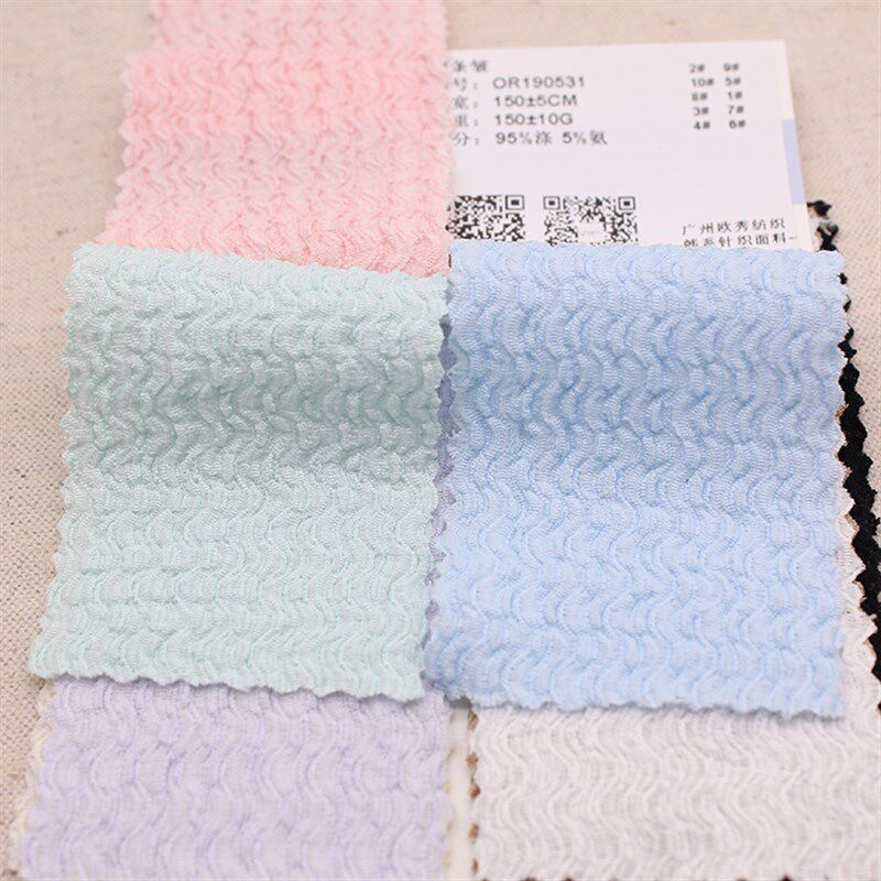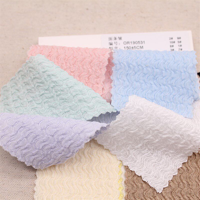 📚 150克面条皱提花弹力皱布针织时装面料春夏女童防嗮裙子娃衣布料