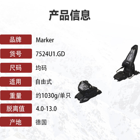 📚 MARKER德国自由式双板固定器雪耙120宽度 7524U1.GD