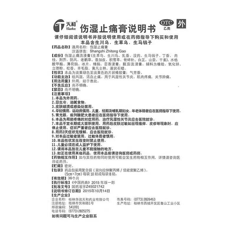 📚 天和伤湿止痛膏8贴/袋风湿性关节炎肌肉疼痛关节肿痛祛风湿止痛