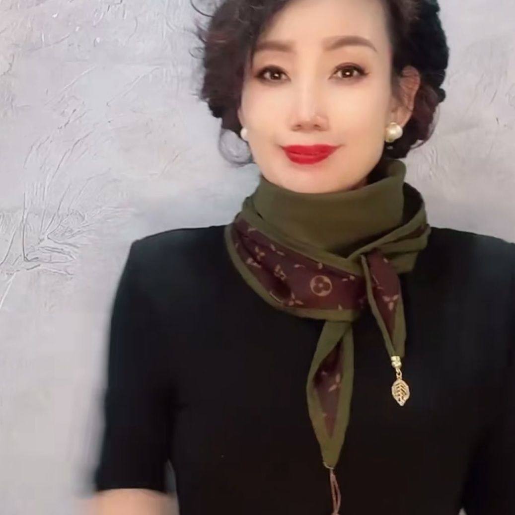 📚 秋冬围巾棉麻双色印花菱形长巾国风一叶知秋文艺吊坠丝巾网红同款
