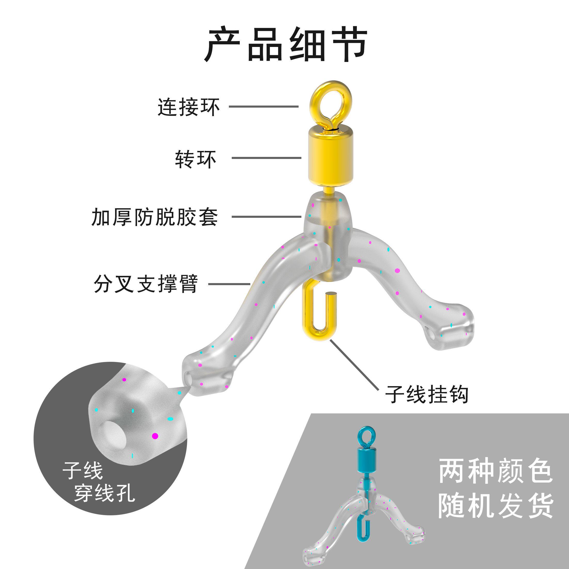 📚 新型快速连接器弹簧卸力硅胶子线防缠豆分叉分线器防缠绕子线夹