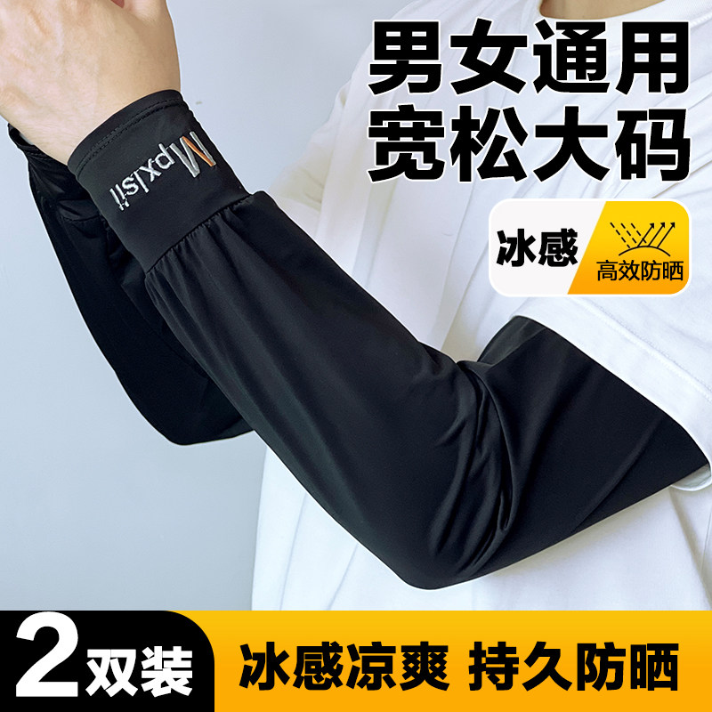 📚 夏季防晒冰丝袖套长款大码男士宽松手臂套袖加大薄款夏天骑行袖子