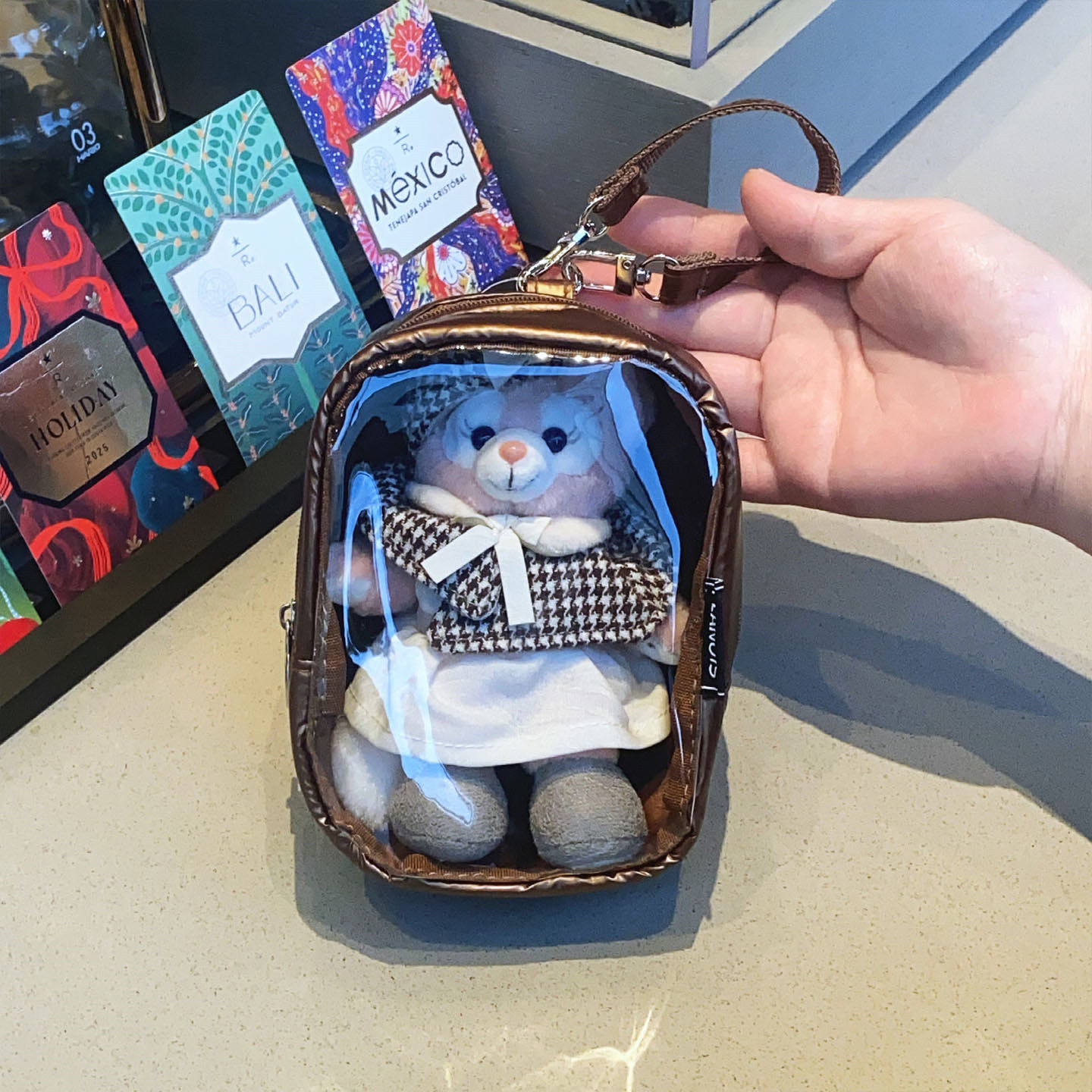 📚 日系卡通狗狗透明娃娃痛包多功能可挂化妆包耳机充电器拉链收纳包