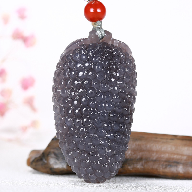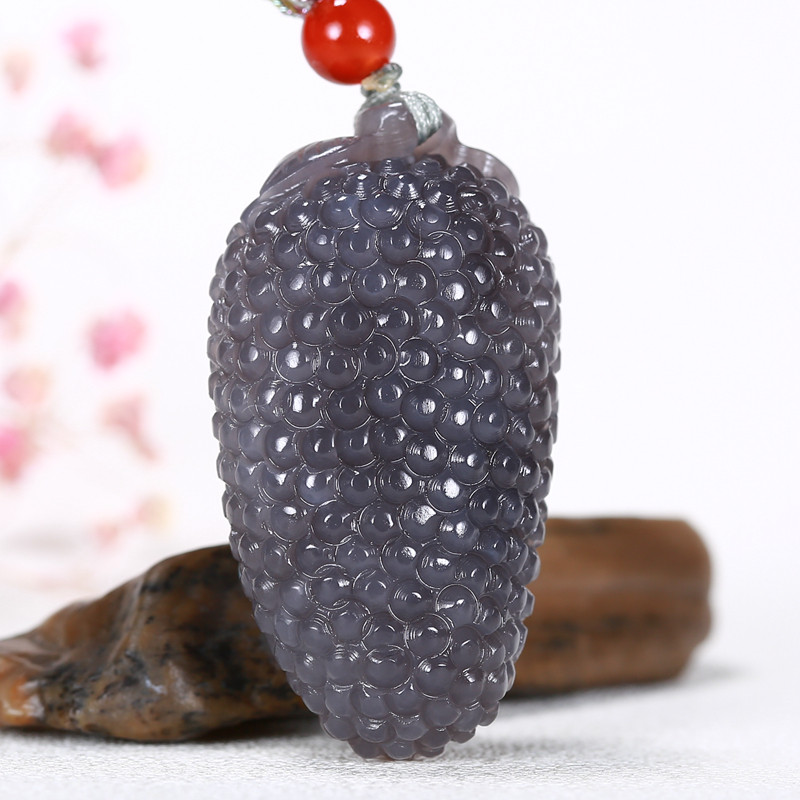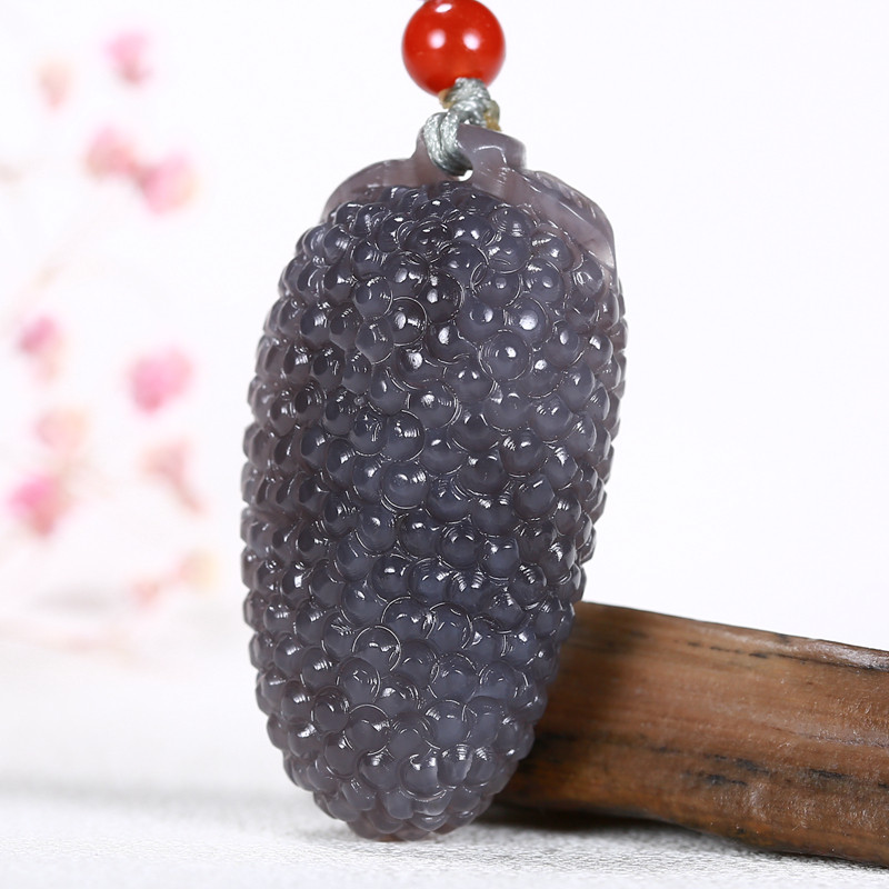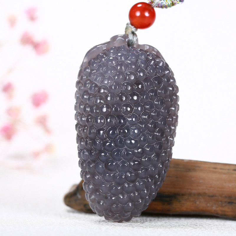 📚 和田玉黑羊脂墨玉挂件硕果累累 聚财吊坠做工精细权 威质检