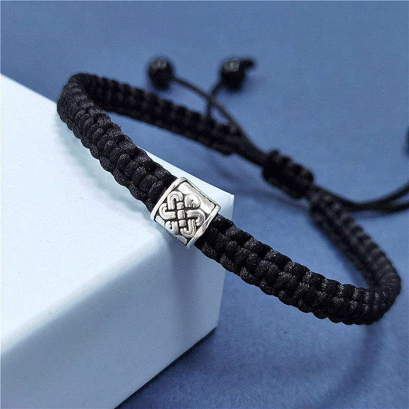 📚 S925纯银复古平安中国结转运珠可加头发青丝手工自编制手绳链材料