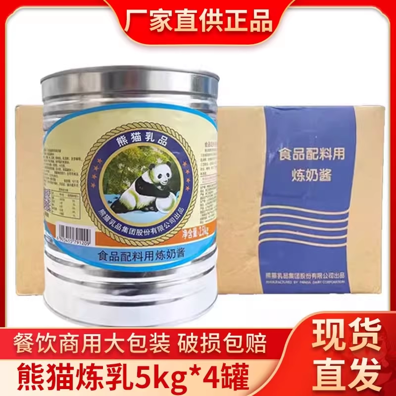 📚 熊猫炼乳商用5kg*4罐整箱加糖甜炼乳商用咖啡伴侣奶茶店烘焙原料