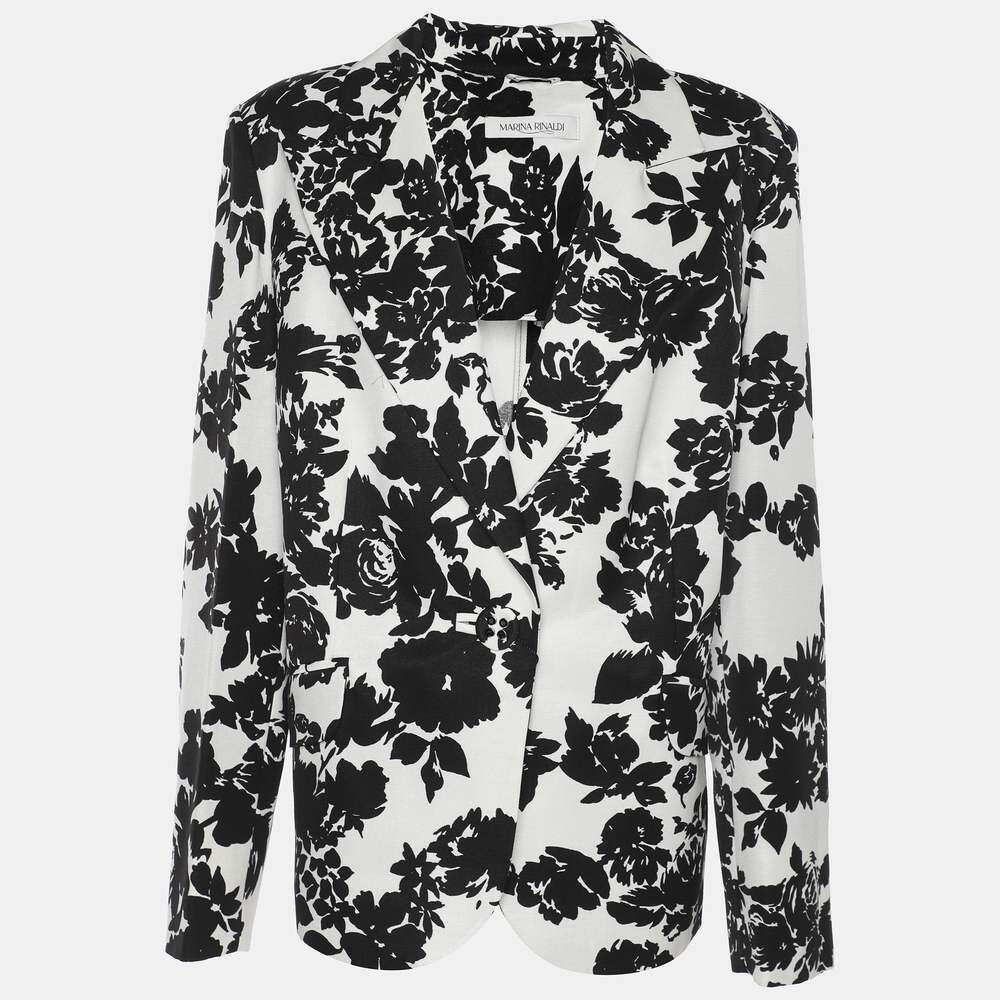 📚 自营Marina Rinaldi Black/white Ottoman Print Single Breasted