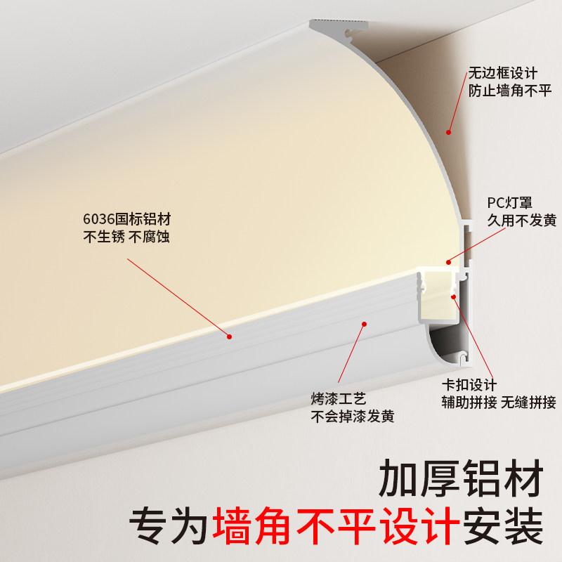 📚 明装顶角线型灯免吊顶铝合金客厅悬浮洗墙向上反光灯槽石膏线条灯