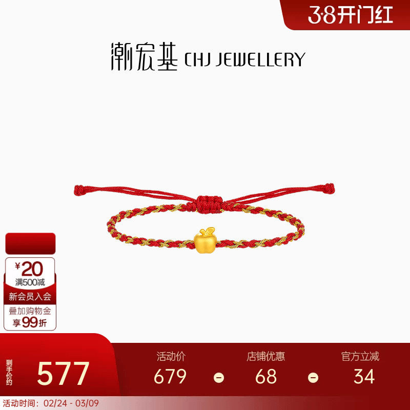 68¥ HU108 SvIgUKKLUVg¥ https://m.tb.cn/h.iZdB0Sx 潮宏基国色平安果黄金手链足金手绳手饰5D硬金苹果红绳新年礼物 --------------------- 【原售价】680元 【现售价】679元。