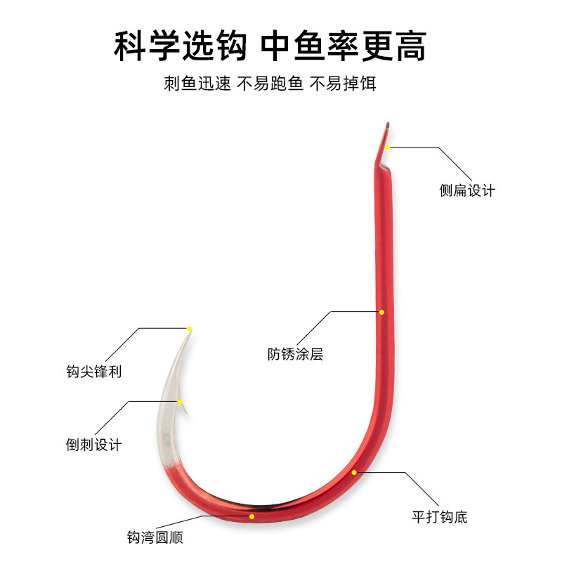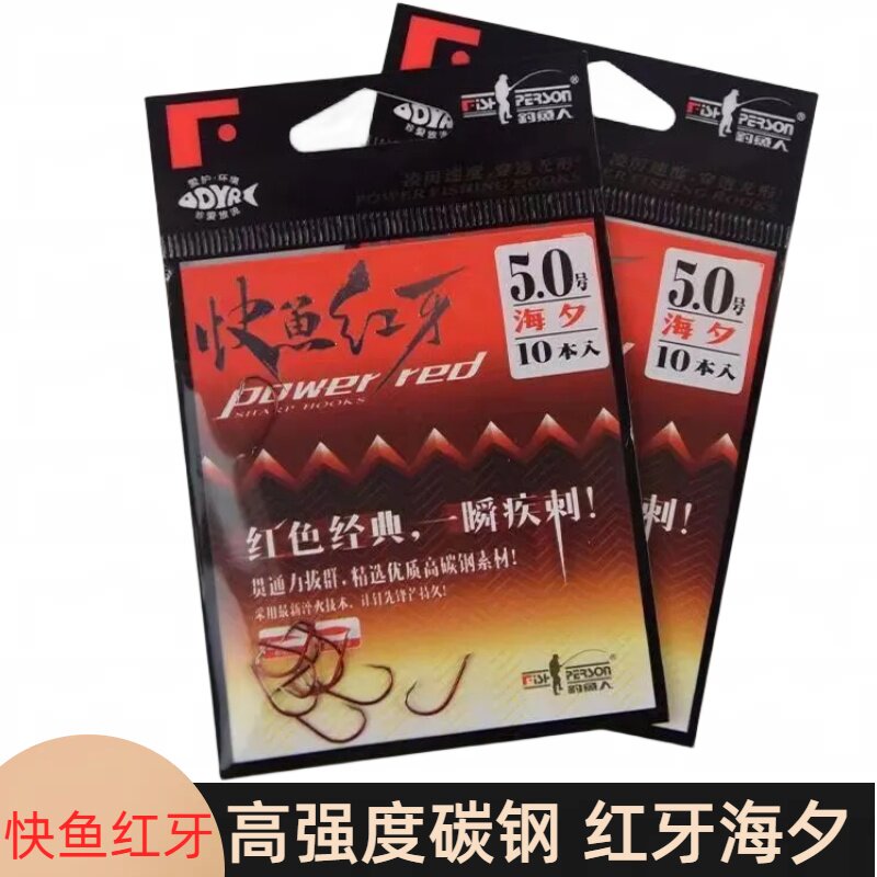 📚 钓鱼人快鱼红牙鱼钩海夕钩千又钩有倒刺平打高碳钢拉力强野钓专用