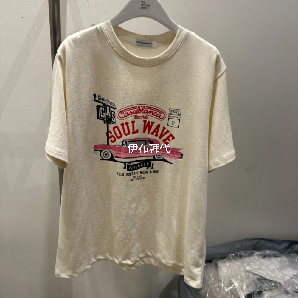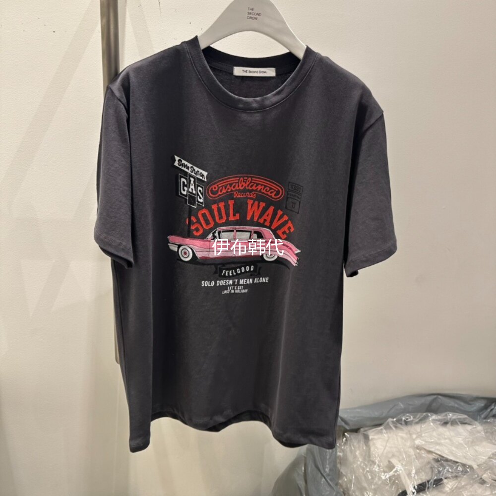 📚 THE SECOND GROW韩国东大门代购26春 圆领休闲字母汽车短袖T恤