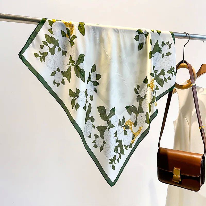 📚 Flower Silk Square Scarf Women Satin Shawl Wrap Female Hair
