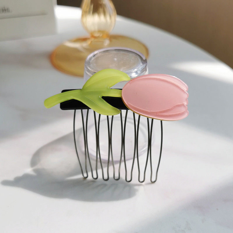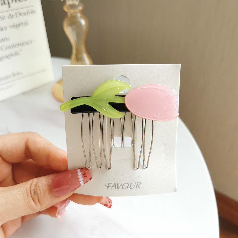 📚 郁金香韩版亚克力发梳反插梳发卡发夹刘海发插儿童刘海梳女头饰品