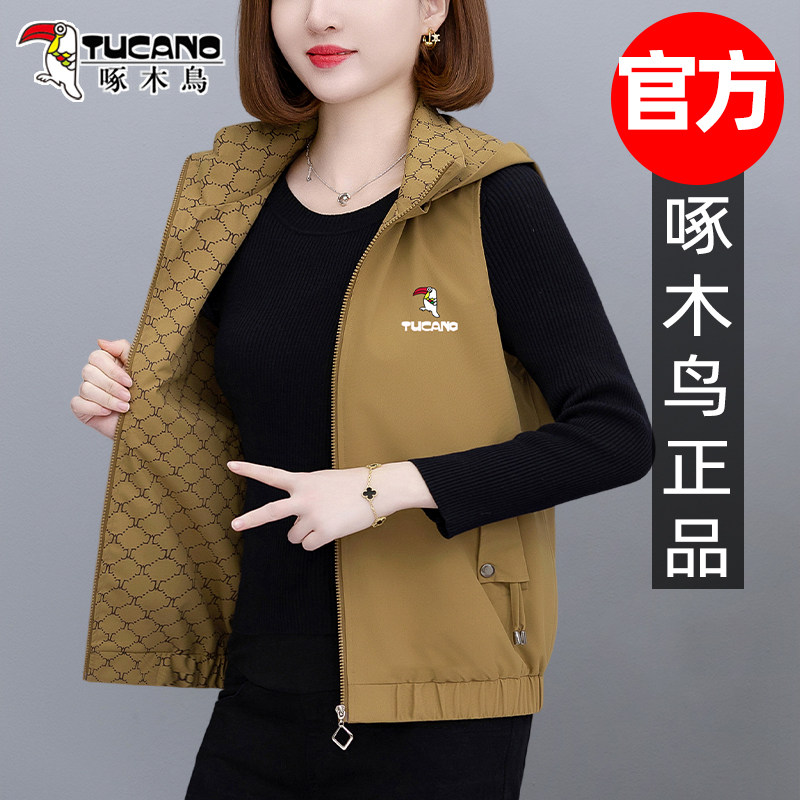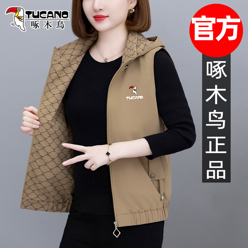 📚 啄木鸟女士休闲短款马甲女连帽春秋新款时尚百搭坎肩夹克双面外穿