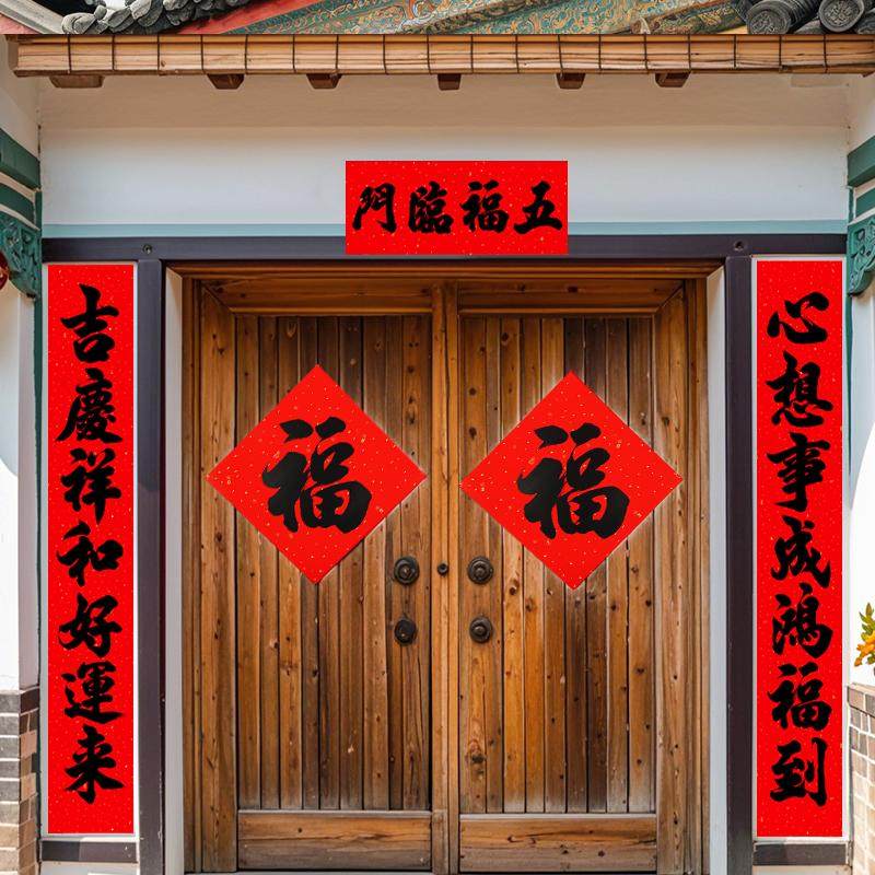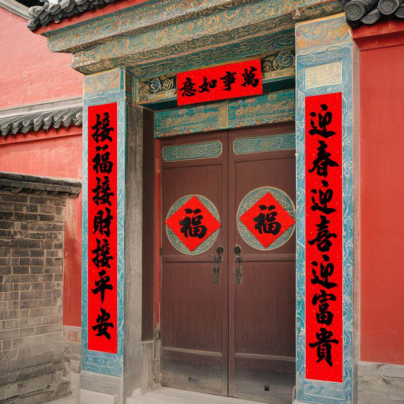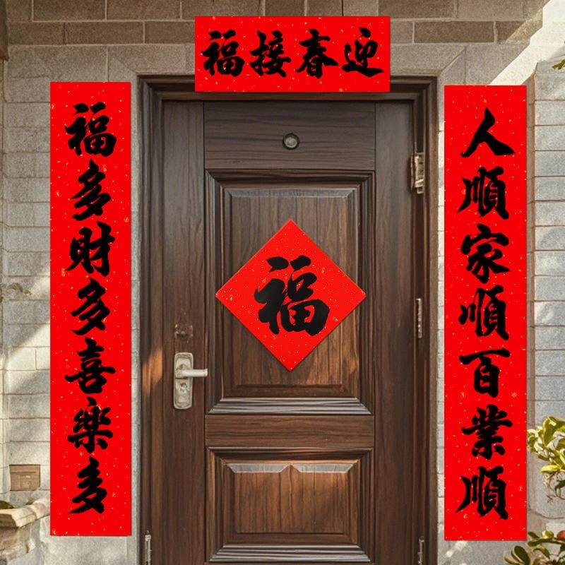📚 书法黑字春联带背胶2026新款过年高级感自粘对联新年大对联入户门