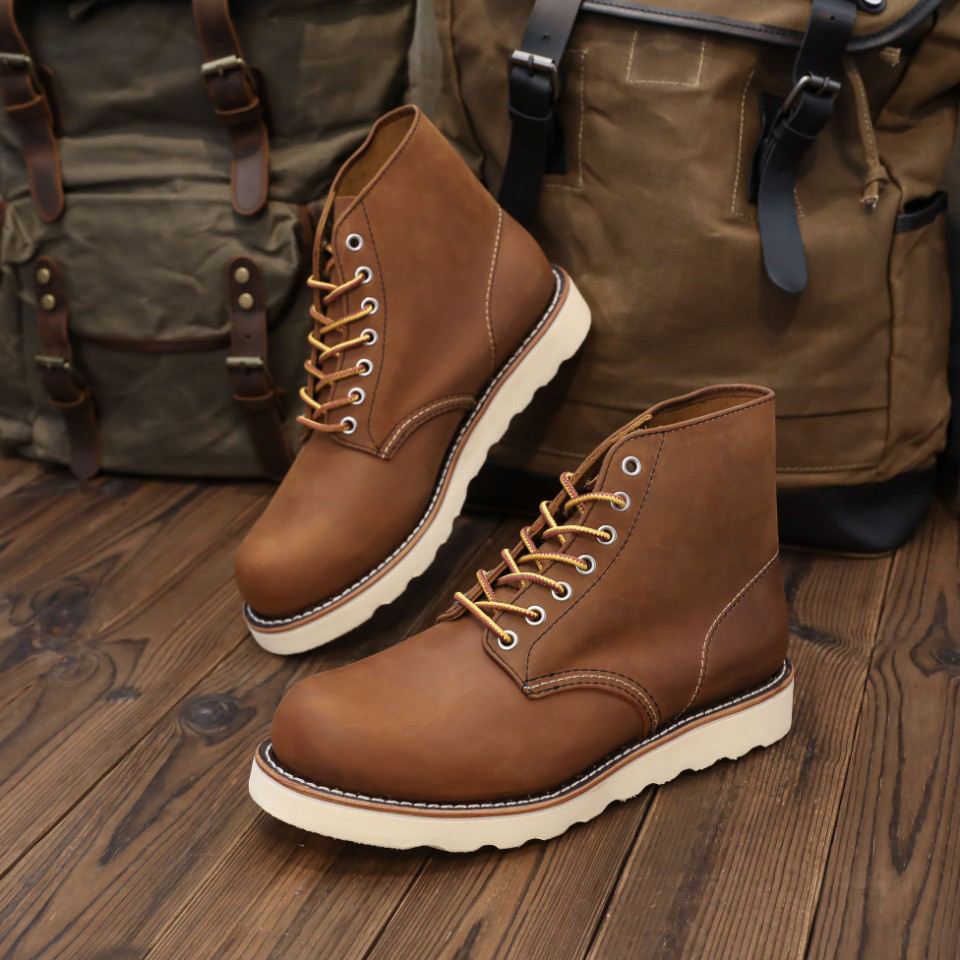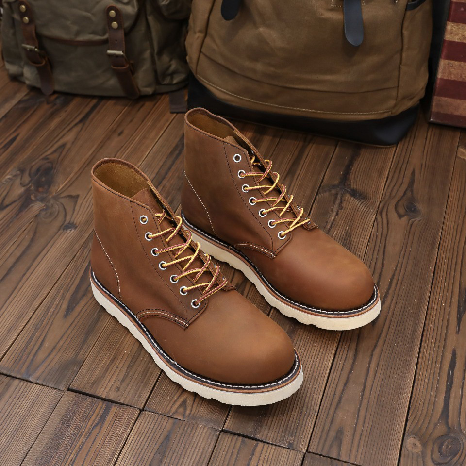 📚 复刻9111工装靴固特异疯马皮复古马丁靴高帮真皮手工短靴