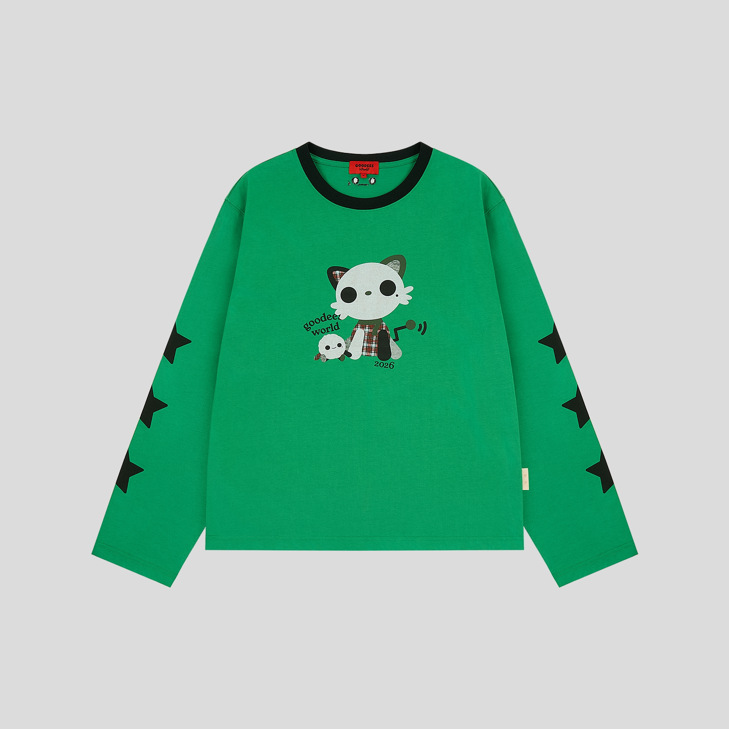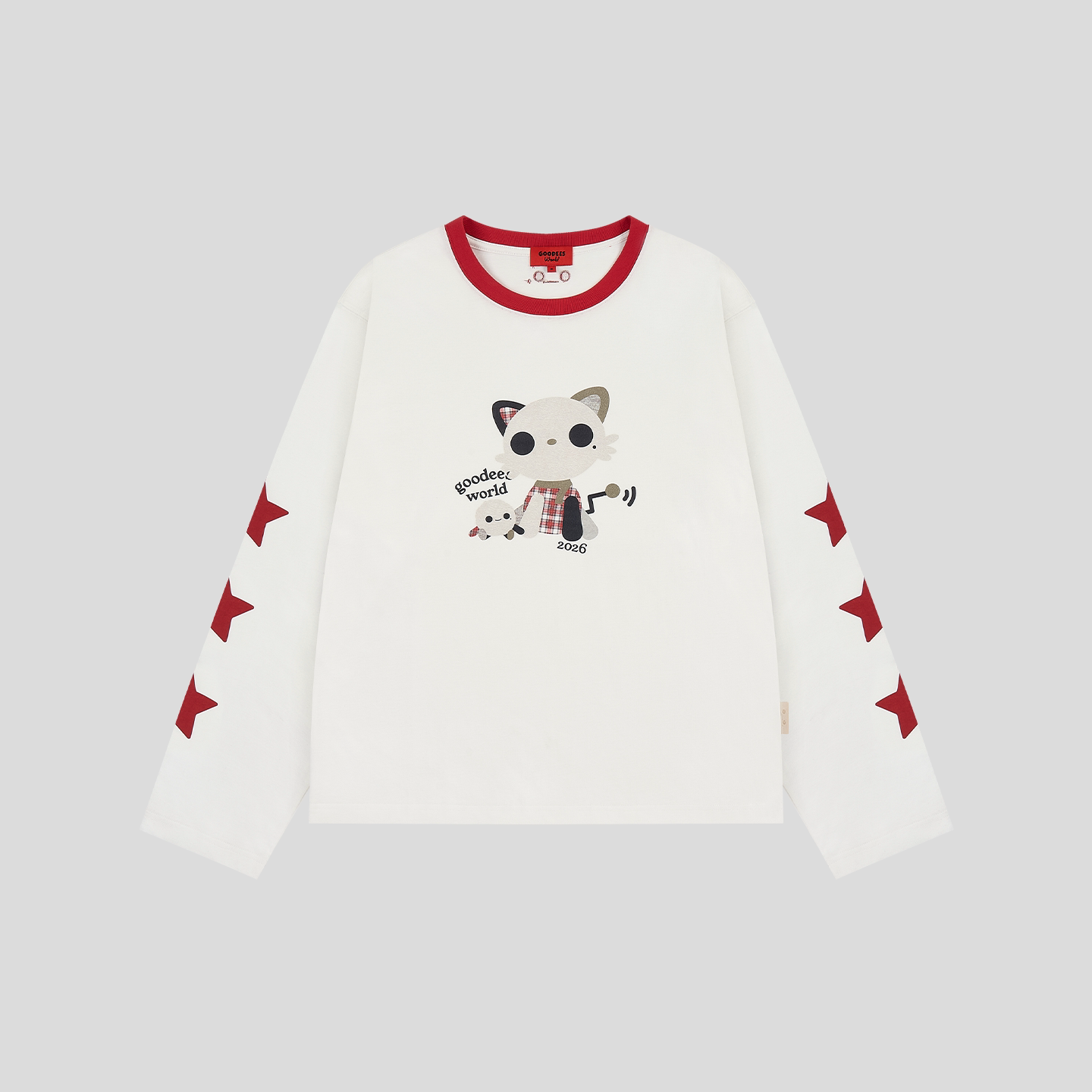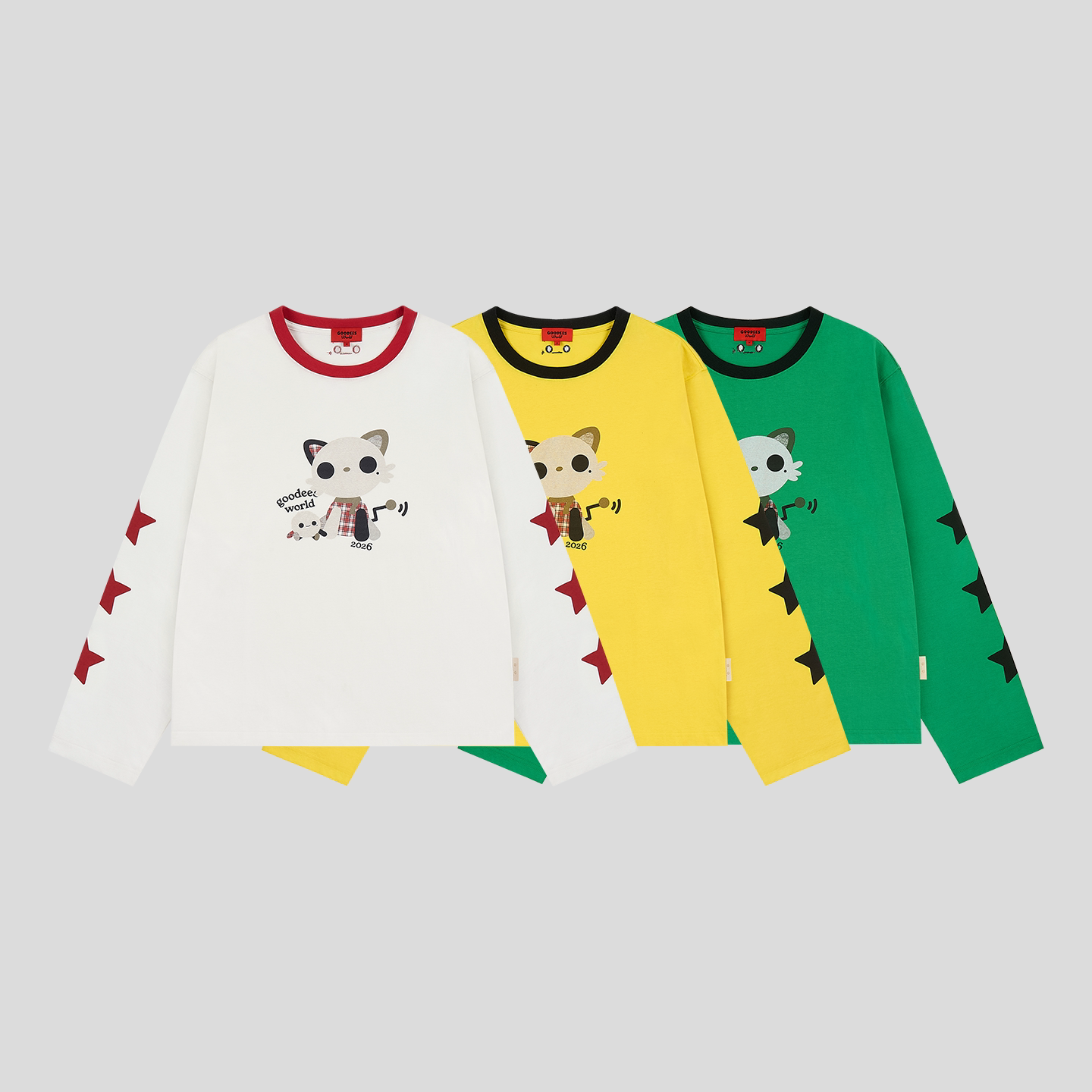 📚 GOODBAI GOODEES 新款五角星机器小猫长袖T恤
