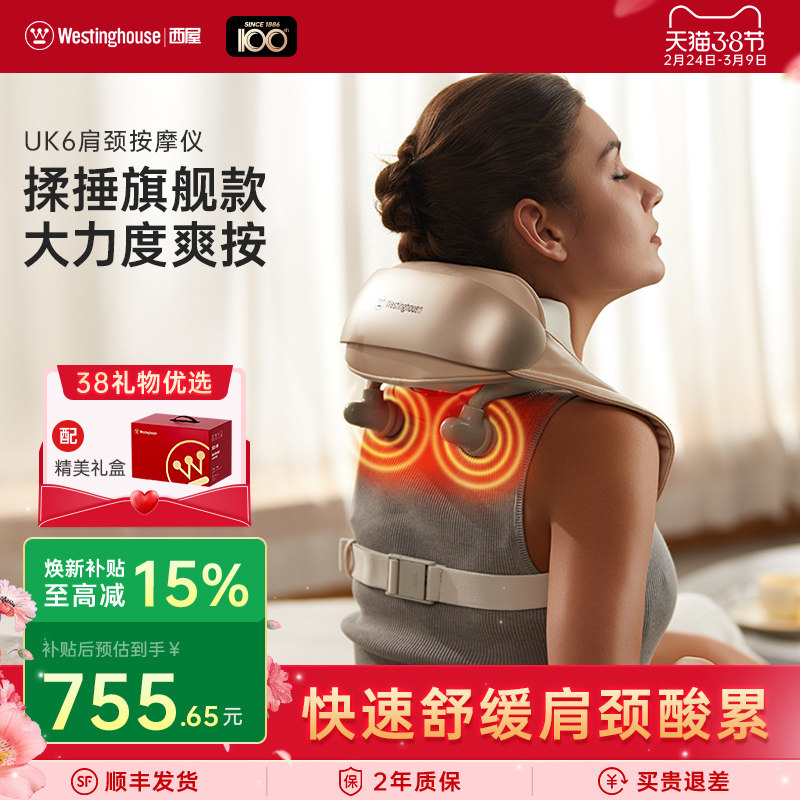 📚 美国西屋UK6揉捶肩颈按摩仪热敷捶打揉捏颈部颈肩腰背颈椎按摩器