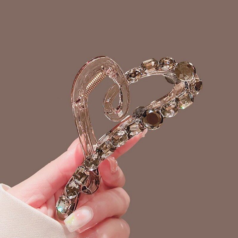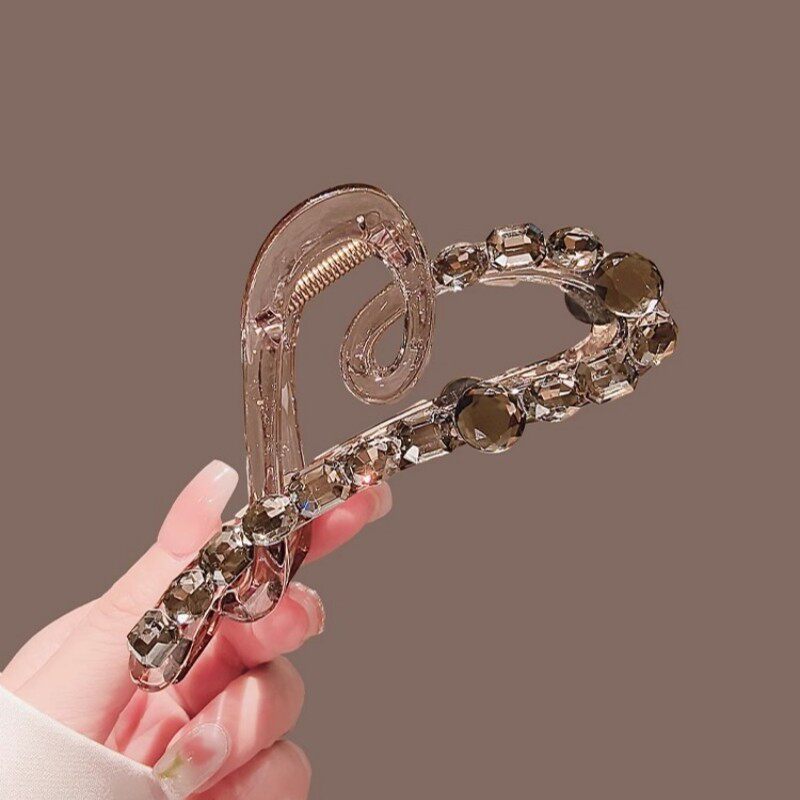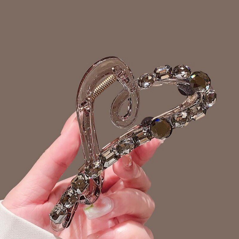 📚 独特设计水钻爱心发夹女2026新款高端后脑勺盘发抓夹高级感鲨鱼夹